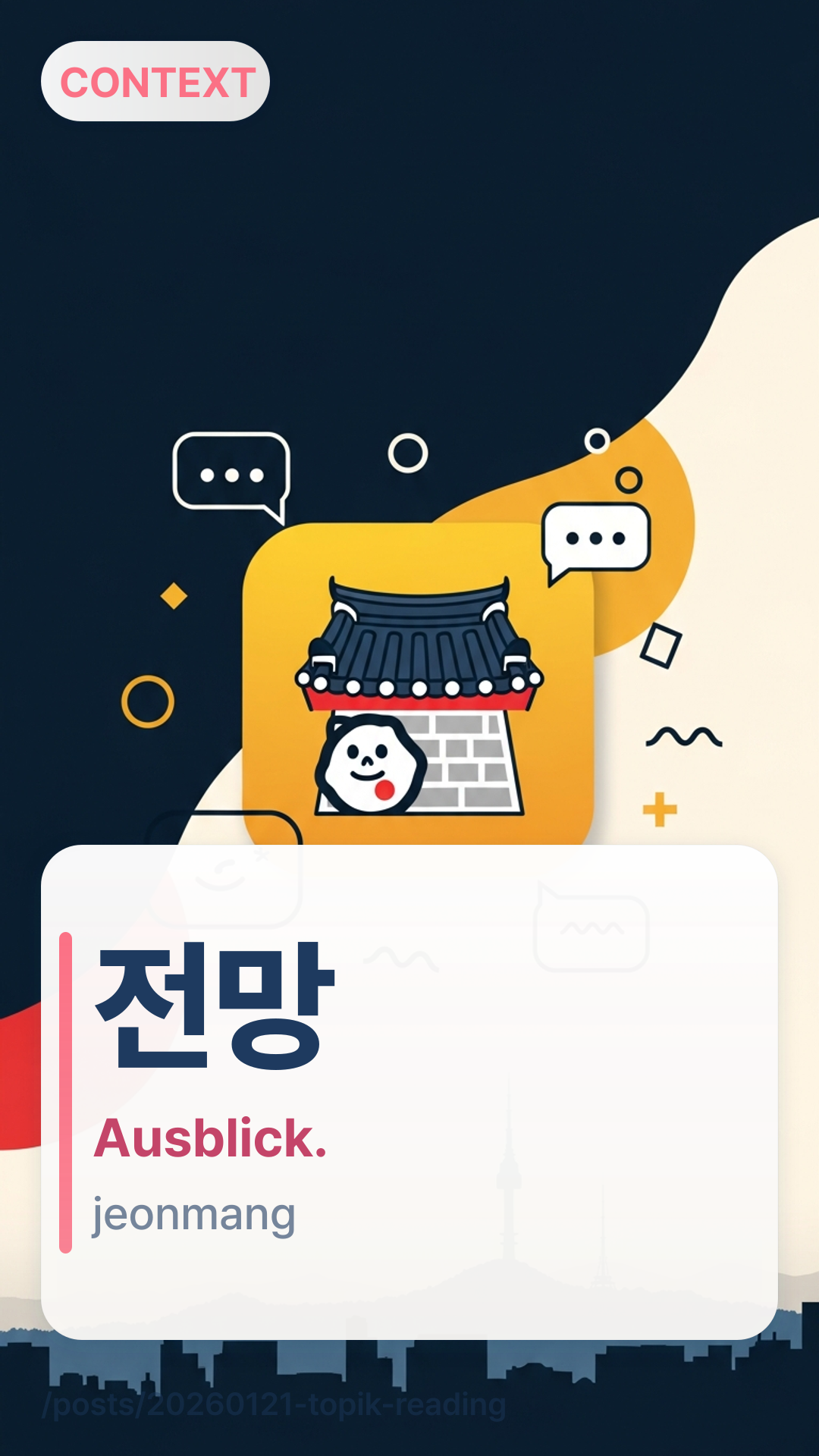 전망jeonmang markiert Vorhersage und Distanz: „das erwarten Analysten/Institutionen“, nicht „das ist bereits wahr“. Beim TOPIK-Lesen hilft dir das, Fakten von Prognosen zu trennen.