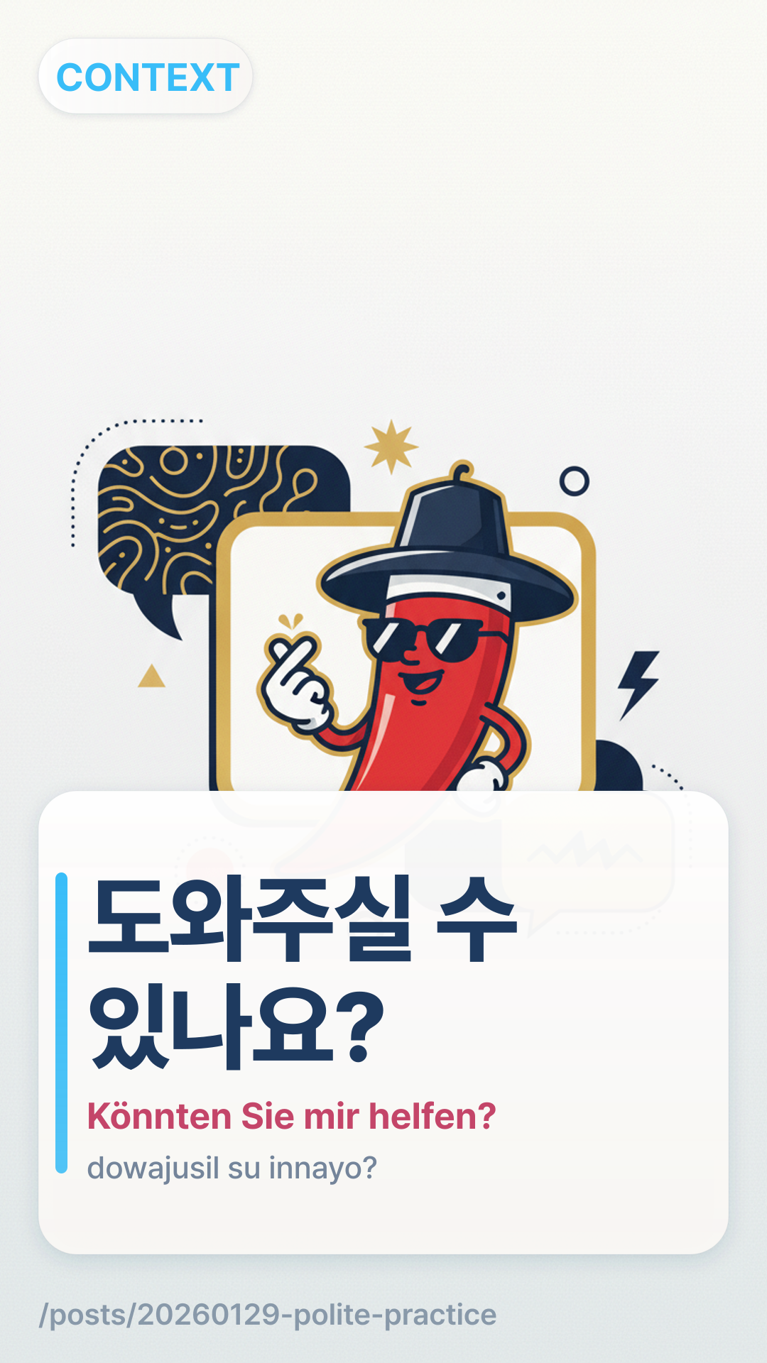 죄송하지만...joesonghajiman... (Es tut mir leid, aber...), bevor Sie um Hilfe bitten, um wie ein Profi in koreanischer Etikette zu klingen. - Wandeln Sie diese 5 plumpen Sätze in höfliche Bitten um, indem Sie die obigen Muster verwenden: