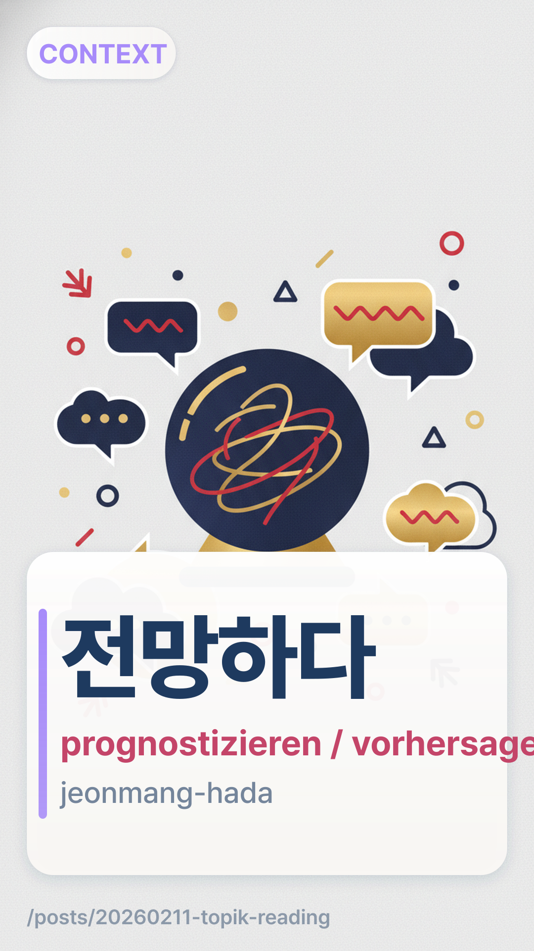 전망하다jeonmanghada wird für Zukunftsprognosen oder Vorhersagen von Experten verwendet. - Q2: