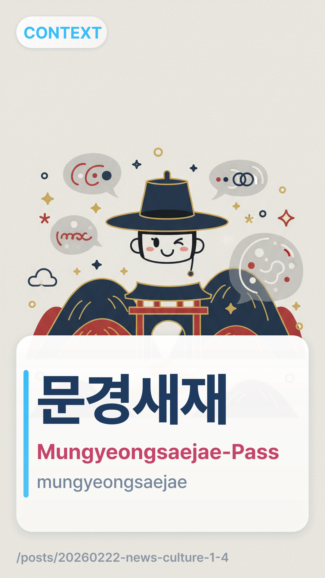 EN brief: 문경시, 영화 '왕과 사는 남자' 촬영지 문경새재서 손님맞이 앞장 (culture) + 1 glossary term.