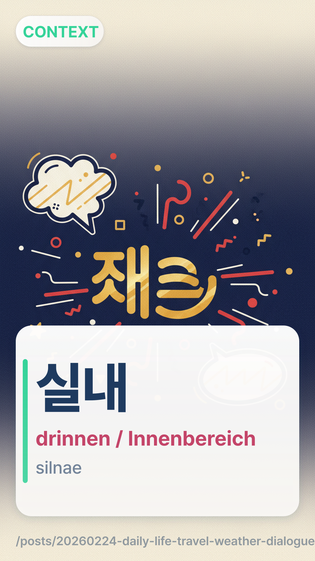 실내silnae실외siroe안에서aneseo (Innen).
