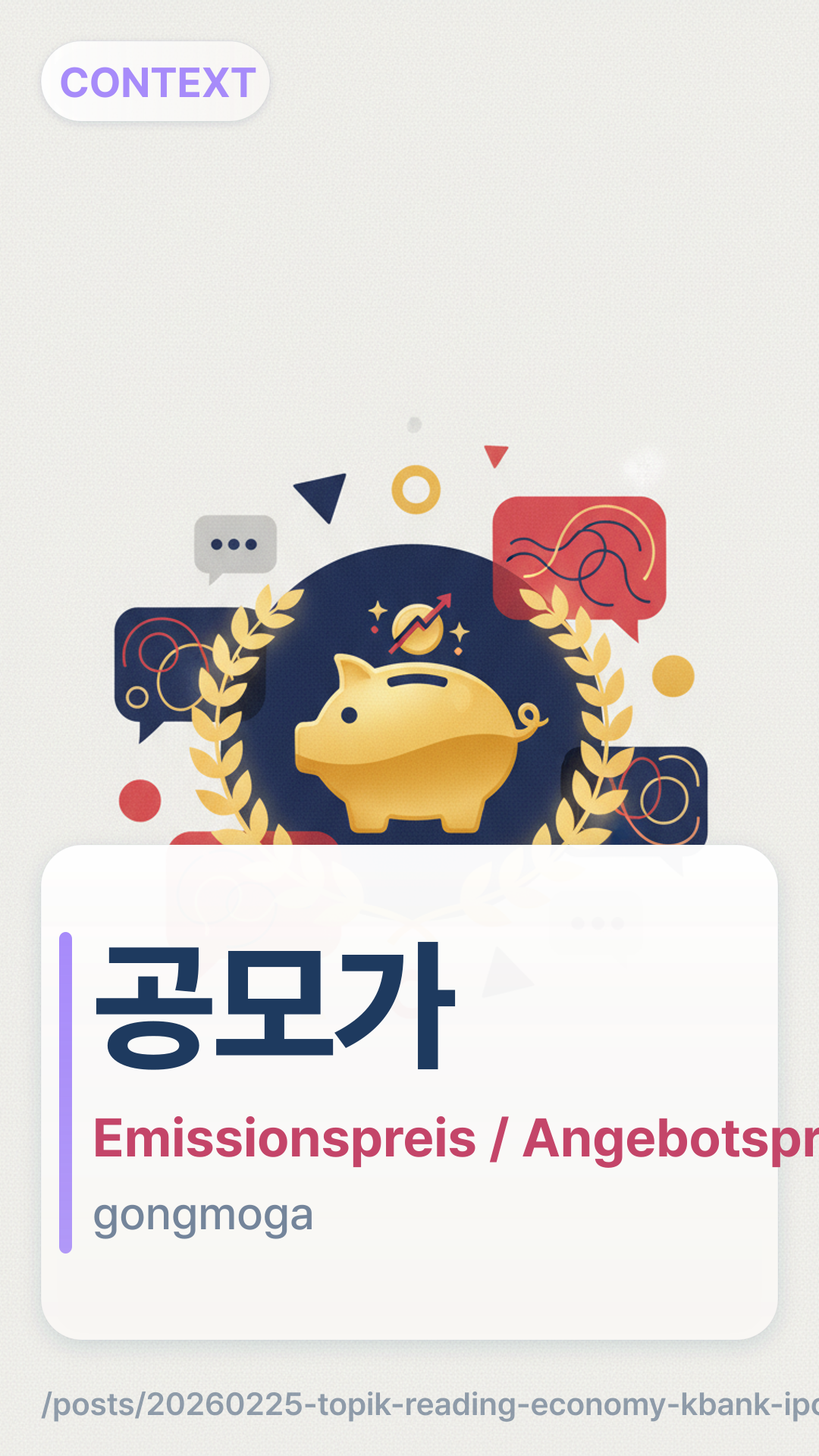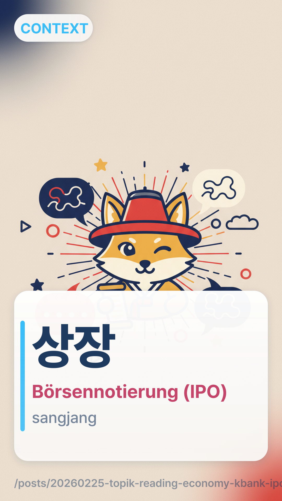 Für Koreanischlernende sind diese Nachrichtenartikel eine Goldgrube für formelles Vokabular. Begriffe im Zusammenhang mit dem Aktienmarkt und der Unternehmensfinanzierung erscheinen häufig in TOPIK II-Lesepassagen. Den Unterschied zwischen dem Gelistet-Sein und dem Akt des Börsengangs zu verstehen, ist eine häufige Hürde für fortgeschrittene Studenten.