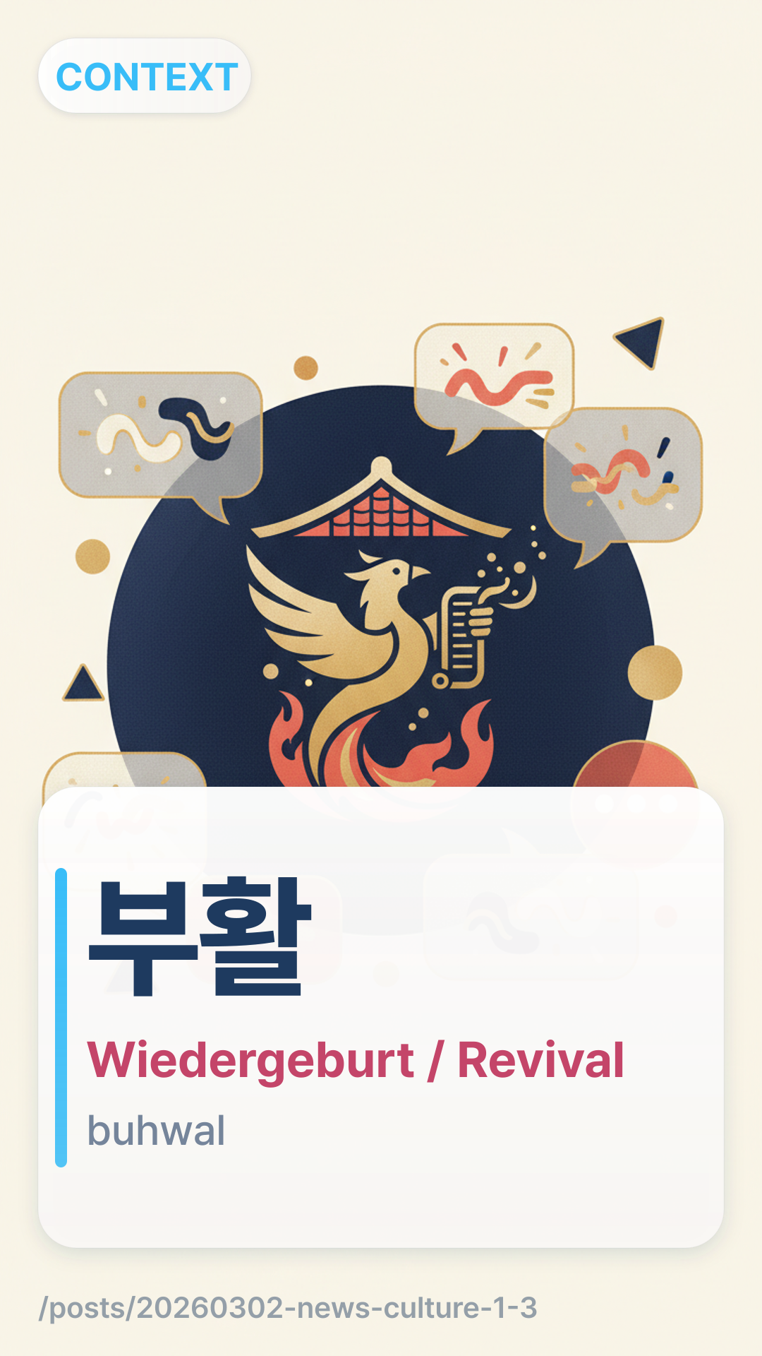 Im Kontext dieser Nachrichten bezieht sich 부활buhwal (buhwal) auf die 'Wiedergeburt' oder das 'Revival' der Geschichte einer historischen Figur oder eines kulturellen Erbes, das aus dem öffentlichen Gedächtnis verblasst war.