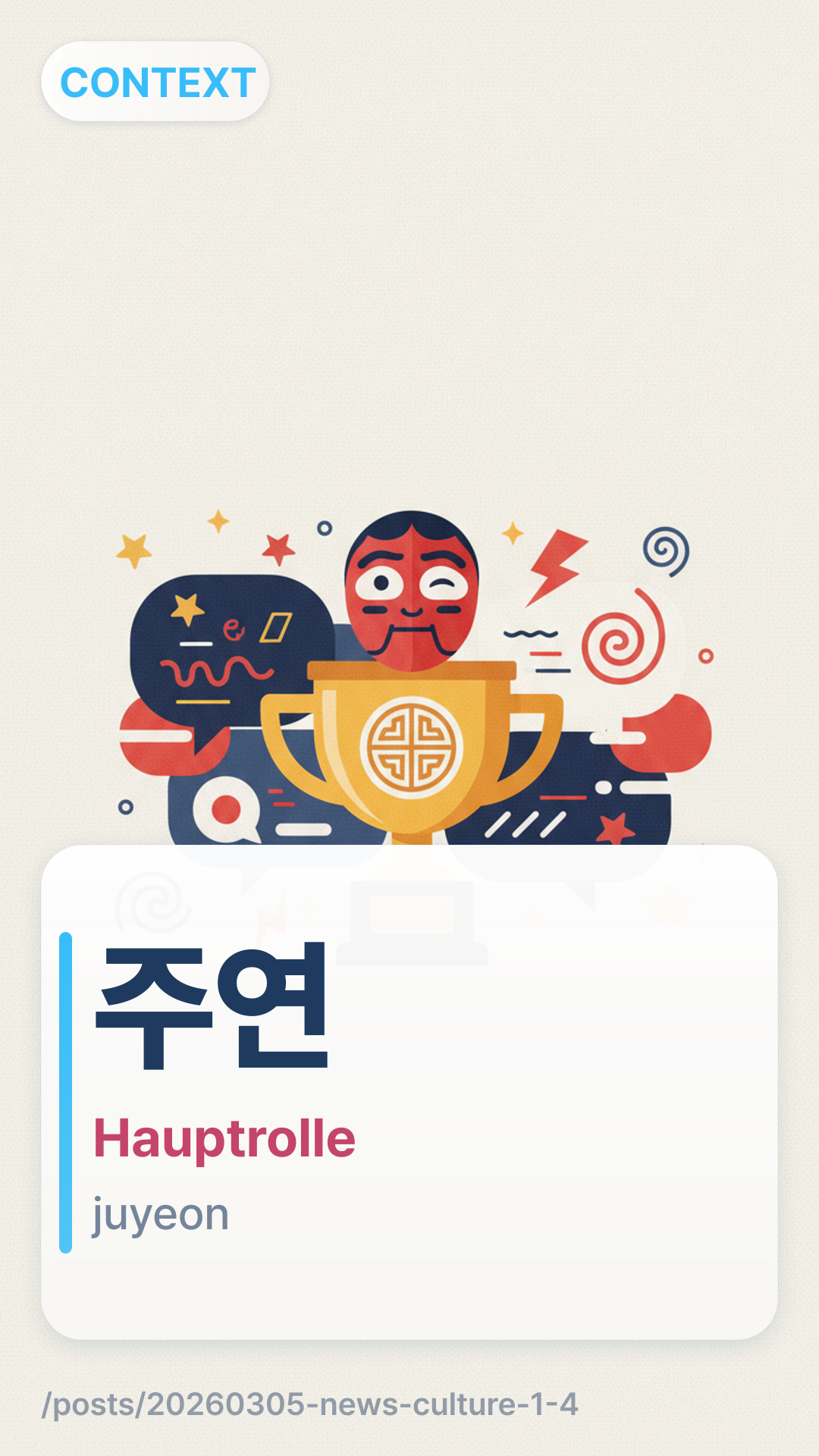 Im Kontext dieser Nachrichten bezieht sich 주연juyeon (juyeon) auf die 'Hauptrolle' oder den 'Protagonisten' eines Films oder Dramas. Es ist der wichtigste Charakter, um den sich die Geschichte dreht.