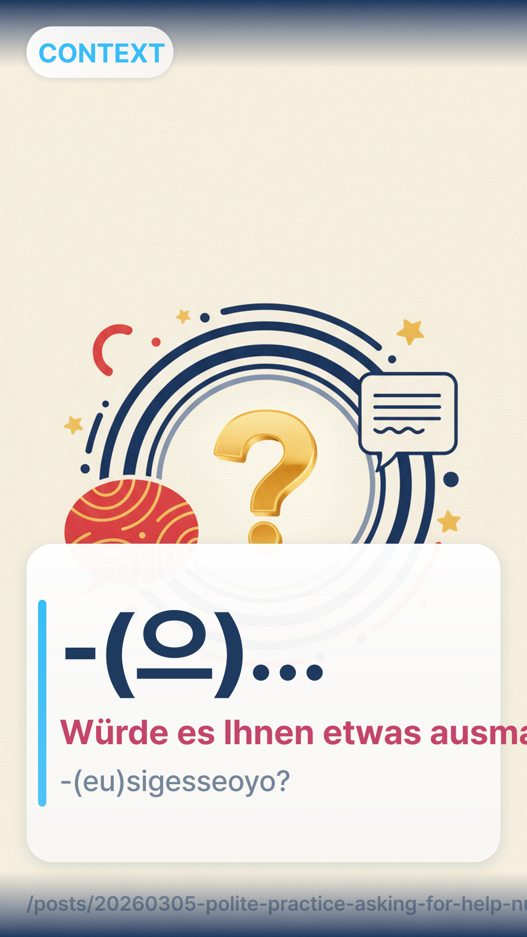 Versuchen Sie heute, ein -주세요-juseyo durch -(으)시겠어요?-(eu)sigesseoyo? zu ersetzen. Egal, ob Sie in einem Café sind oder einem Sprachpartner schreiben, achten Sie darauf, wie der weichere Ton die Interaktion verändert. Es ist der einfachste Weg, vom „Touristen-Koreanisch“ zum „respektvollen Kommunikator“ aufzusteigen.