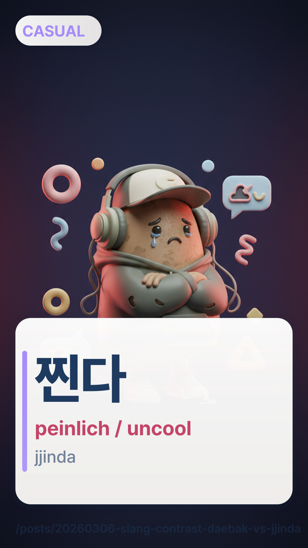 Lerne den Unterschied zwischen 대박 und 찐다. Beleidige deine Freunde nicht aus Versehen, wenn du ihnen eigentlich gratulieren willst! Meistere koreanischen Slang.