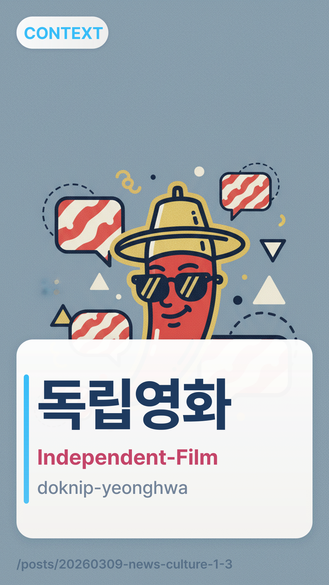 EN brief: 영진위 인디그라운드, 독립영화 무료 상영망 촘촘히 넓힌다 (culture) + 1 glossary term.
