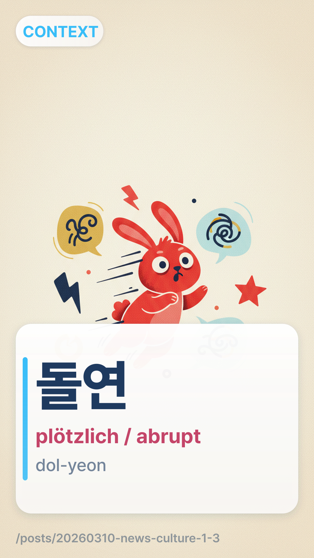 In der Schlagzeile wird das Wort 돌연 (dol-yeon) verwendet, um die Art der Absage zu beschreiben. Es lässt sich mit 'plötzlich' oder 'abrupt' übersetzen und wird oft in Nachrichtenberichten verwendet, um unerwartete Ereignisse oder Planänderungen zu beschreiben.
