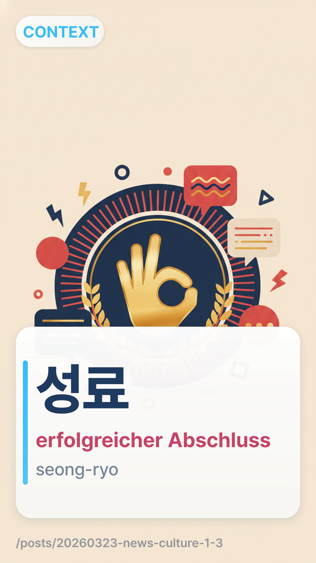 '성료' (seong-ryo) ist ein formeller, auf Hanja basierender Begriff, der oft in Schlagzeilen verwendet wird, um den erfolgreichen Abschluss einer Veranstaltung wie eines Konzerts, Festivals oder einer Konferenz zu beschreiben.