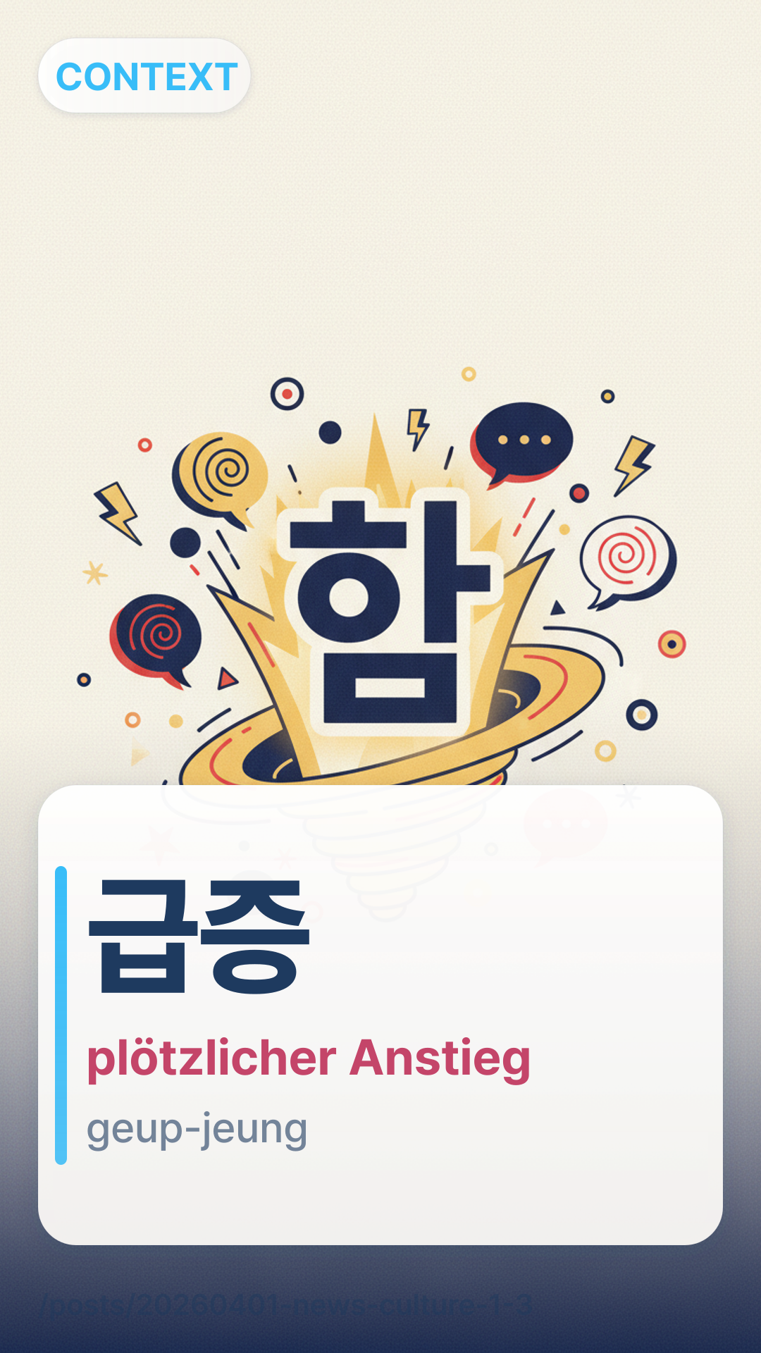 급증geupjeung (geup-jeung) bezieht sich auf einen plötzlichen, schnellen Anstieg oder einen starken Zuwachs von Zahlen, oft verwendet in wirtschaftlichen oder statistischen Kontexten.