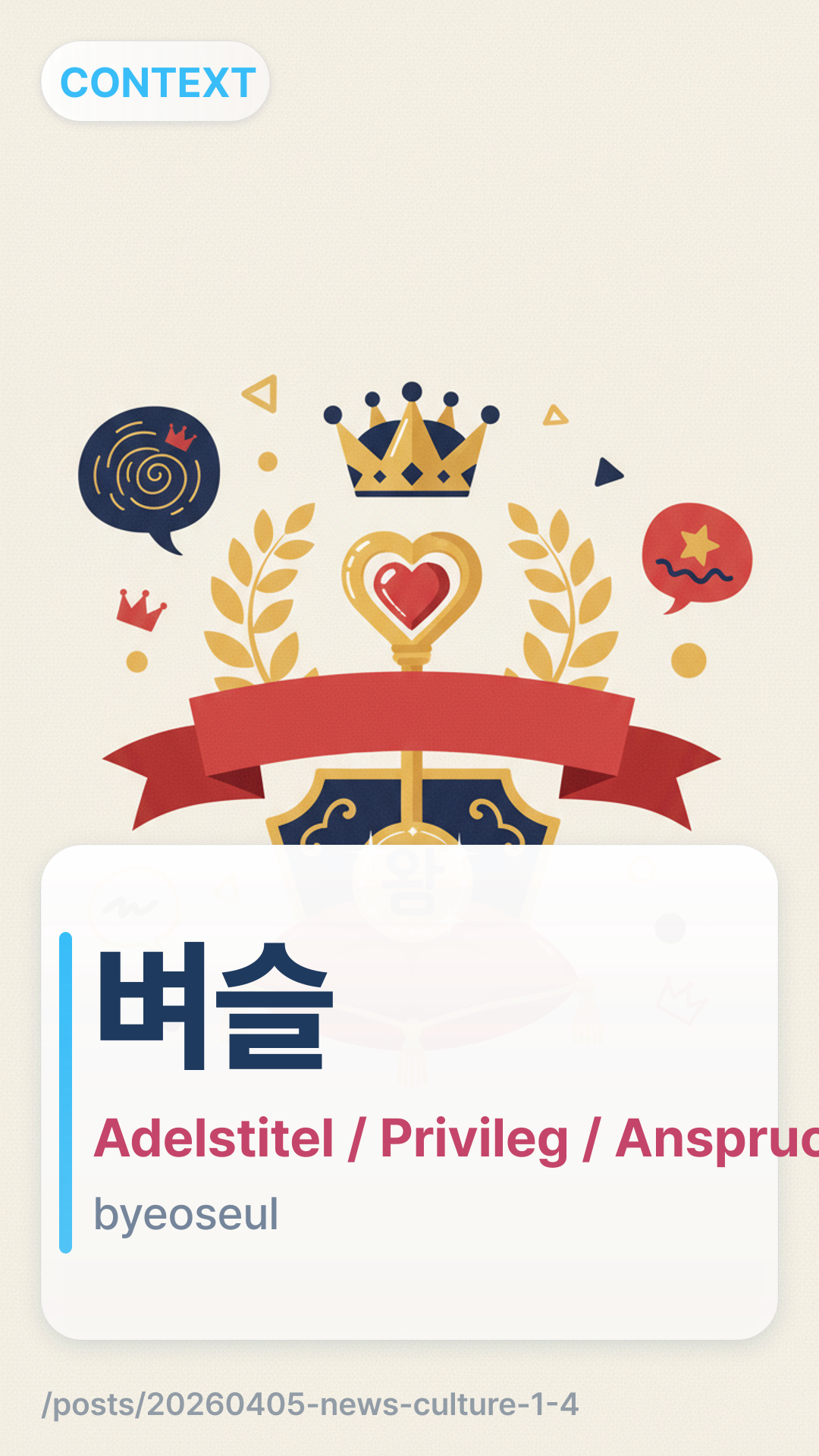 In diesem Kontext bezieht sich 벼슬byeoseul (byeoseul) auf ein altes Regierungsamt oder einen Adelstitel aus der Joseon-Dynastie. Im modernen Slang wird es sarkastisch verwendet, um jemanden zu beschreiben, der sich so verhält, als ob sein Job oder seine Situation ihm einen besonderen, überlegenen Rang verleiht, der es ihm erlaubt, andere herumzukommandieren.