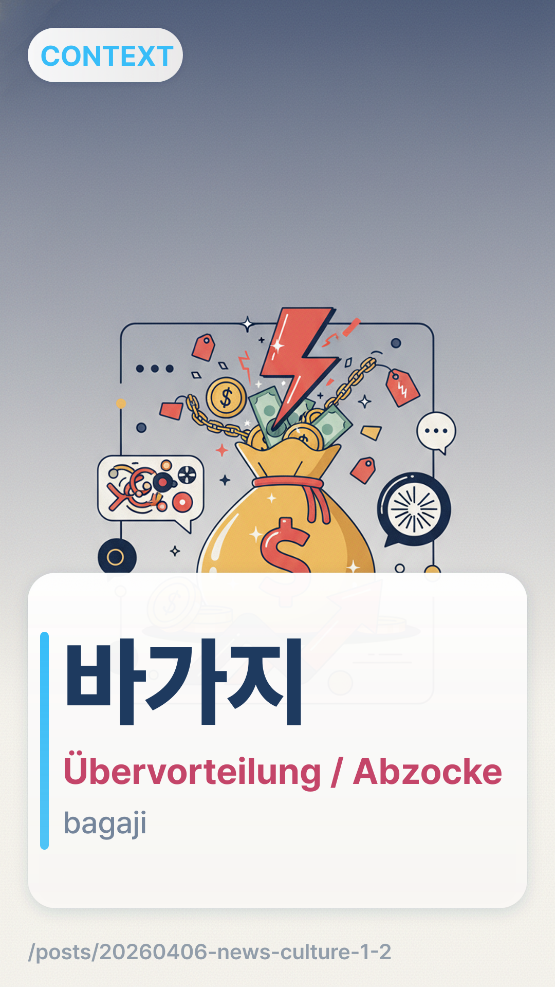 (Bagaji) bedeutet wörtlich eine große Schüssel oder ein Schöpflöffel aus einer Kalebasse, aber in diesem Kontext bezieht es sich darauf, übers Ohr gehauen oder abgezockt zu werden. Es wird am häufigsten in der Redewendung (abgezockt werden) verwendet.