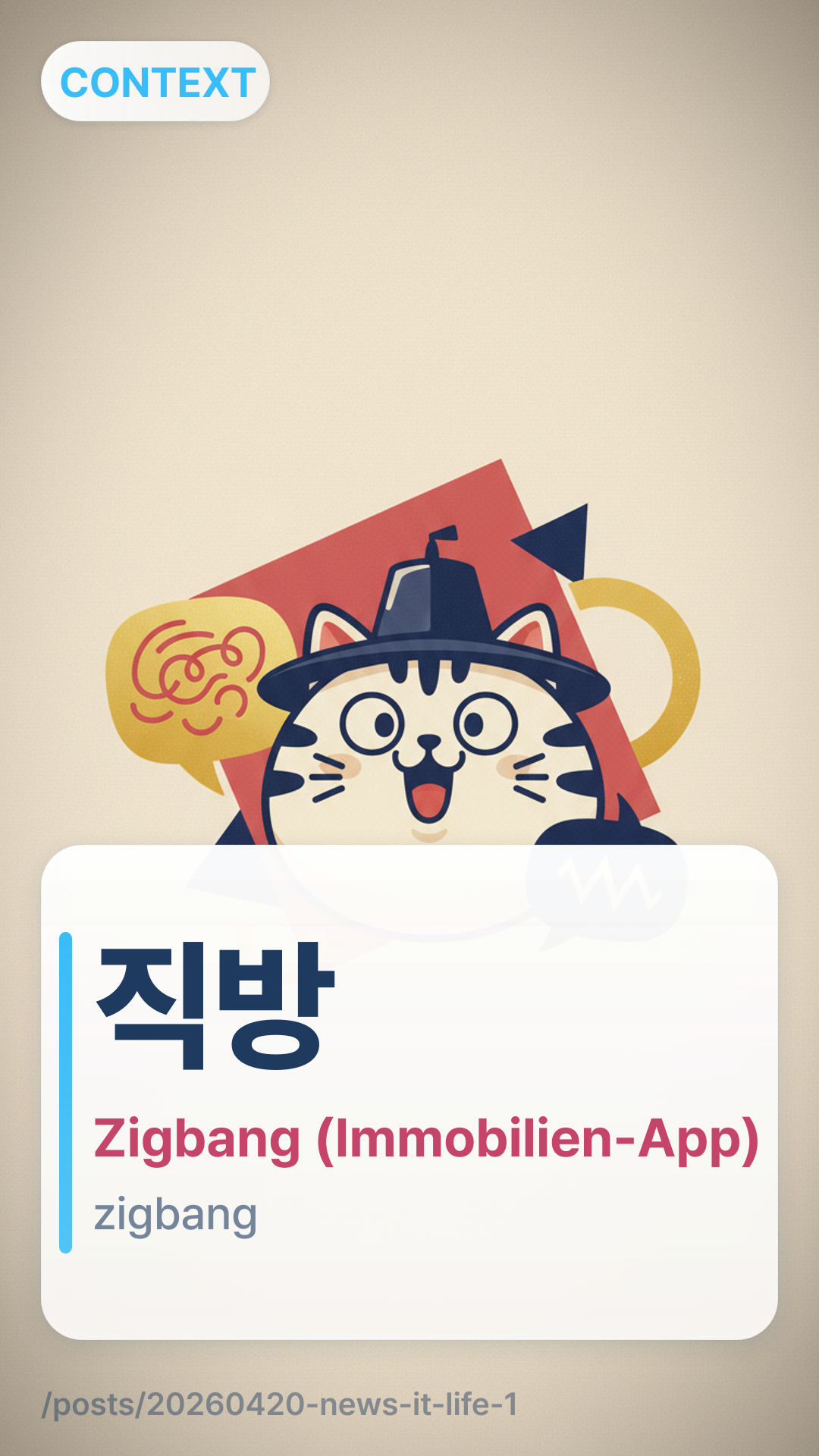 EN brief: 인공지능 입히는 '직방'…앱 이용 편의성 강화 속도↑ (it-life) + 1 glossary term.