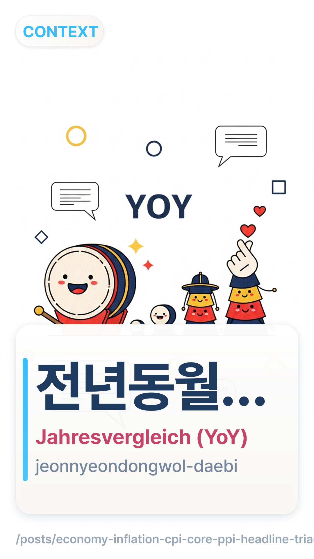 Verstehe `전년동월대비` und `근원물가` in Inflations-Schlagzeilen: CPI/Core/PPI-Triagebaum plus YoY/MoM und % vs. %p-Drills—an 10 Headlines üben.