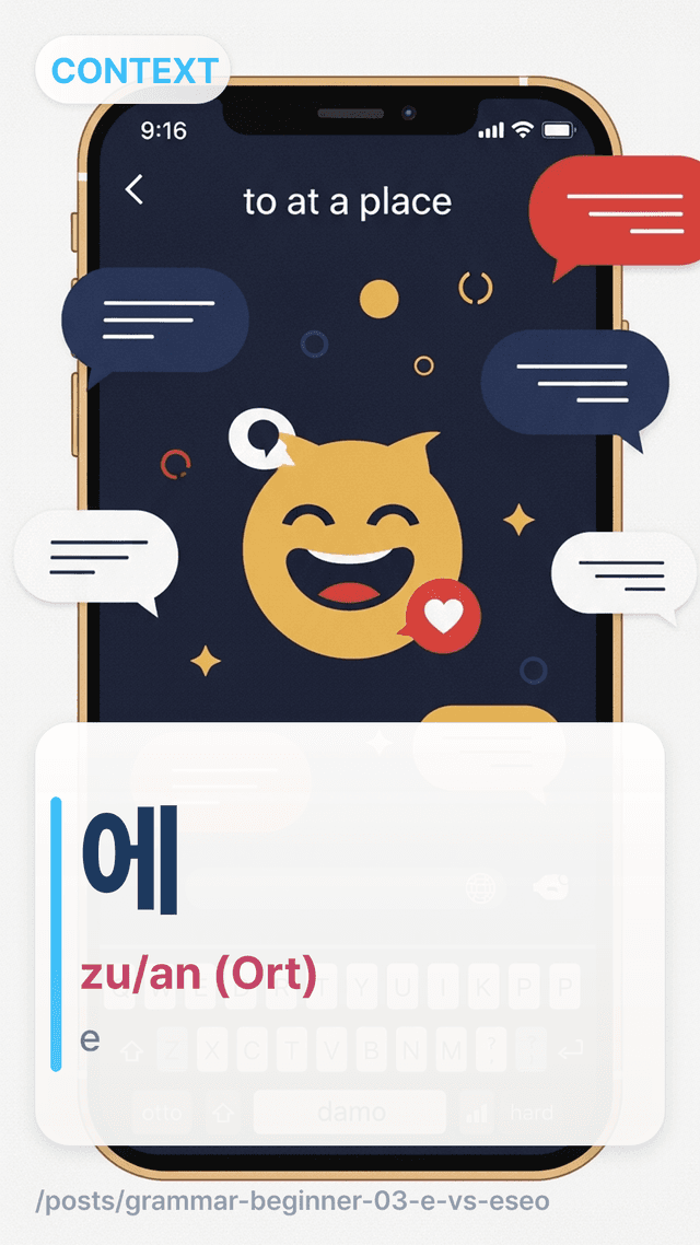 에 vs 에서 mit „wo es passiert“ vs „zu/an“ — erklärt mit 장소 + 이동/행동-Verben und einer kleinen Entscheidungs-Checkliste.