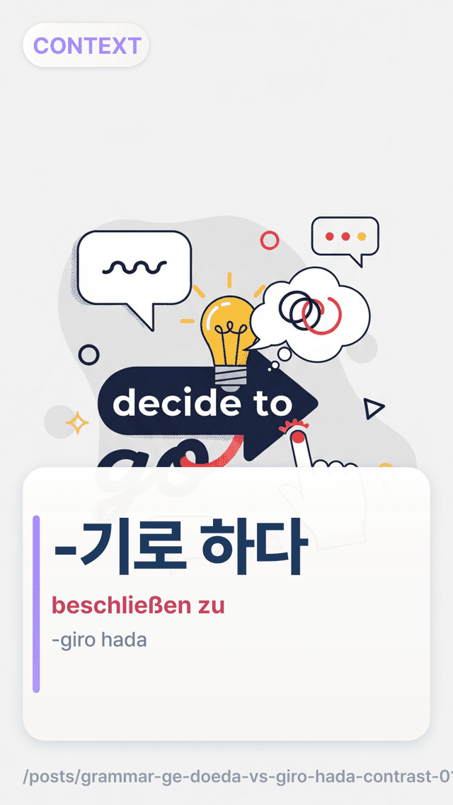 Lerne -게 되다 vs -기로 하다 (ungeplant passiert vs bewusst entschieden) mit einem Agency-Meter, Minimalpaaren und Chat-Rewrites – damit es natürlich klingt.