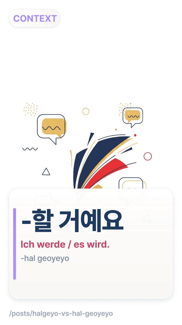 Lerne -할게요 & -할 거예요 mit alltagsnaher Nuance, Minimalpaaren und einem Entscheidungsbaum – damit du bei der Arbeit nicht unsicher klingst.