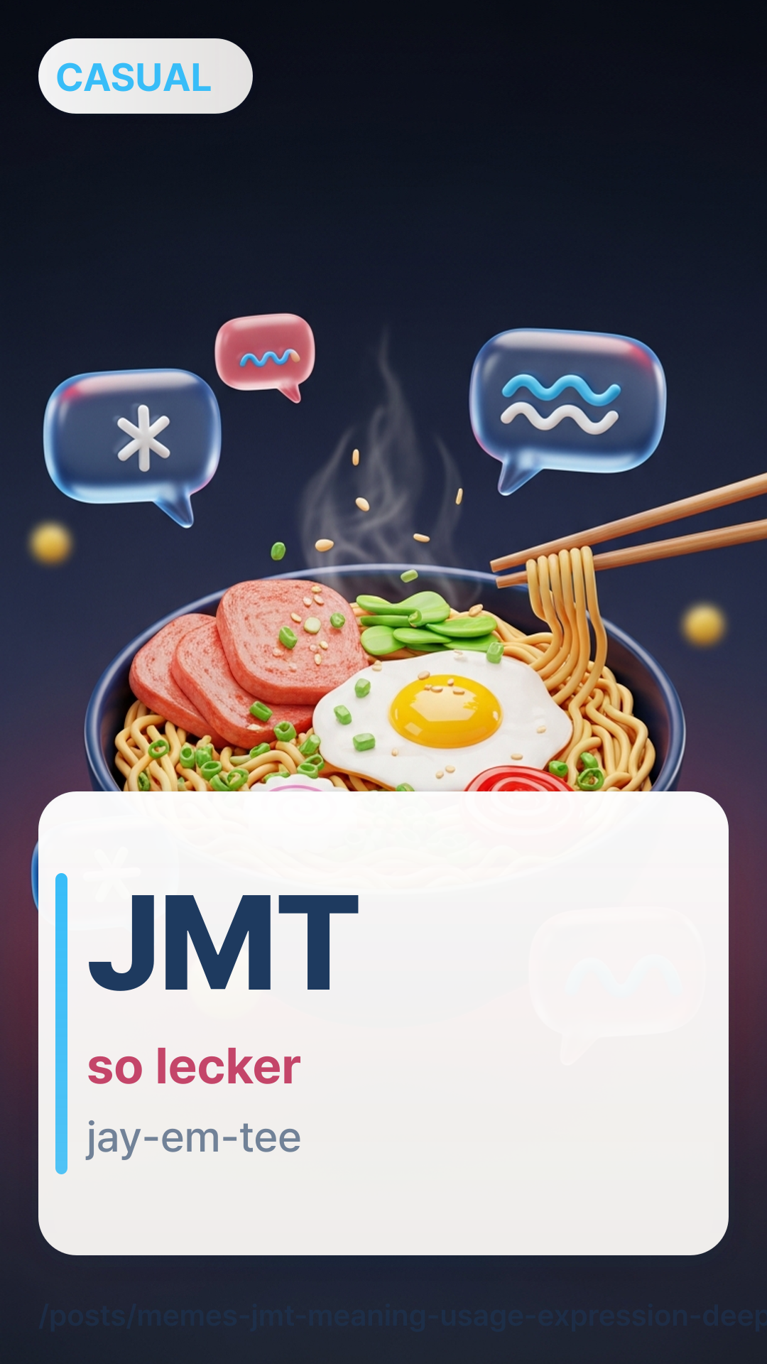 Ich habe es zum ersten Mal unter einer Late-Night-Review zu einem Convenience-Store-Snack auf Instagram gesehen: Jemand postete ein verschwommenes Foto von einem Hot-Bar-Item, und der Top-Kommentar war einfach nur JMT. Keine Satzzeichen, kein Kontext—und trotzdem verstanden alle, dass es „das ist wirklich, wirklich gut“ bedeutet.