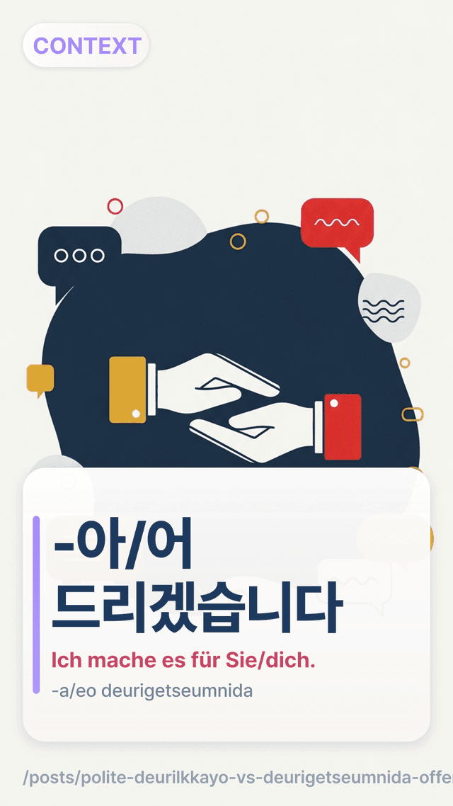 Lerne, wann du 드릴까요? vs 드리겠습니다 in höflichen koreanischen Angeboten nutzt, übertriebene Zusagen vermeidest und im Job natürlich klingst – meistere es heute und lerne