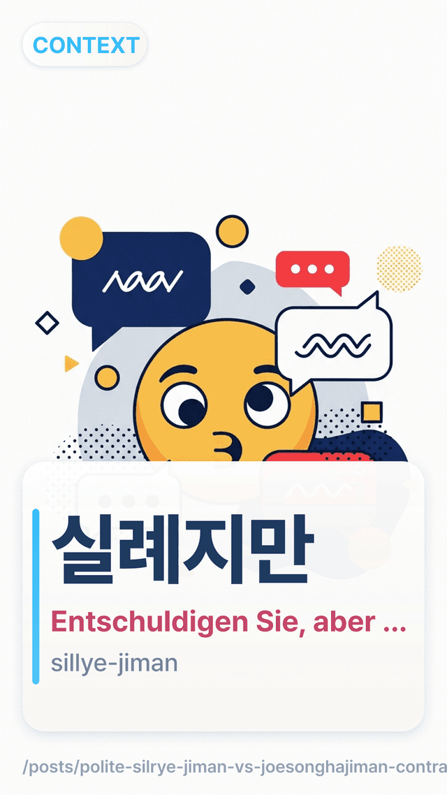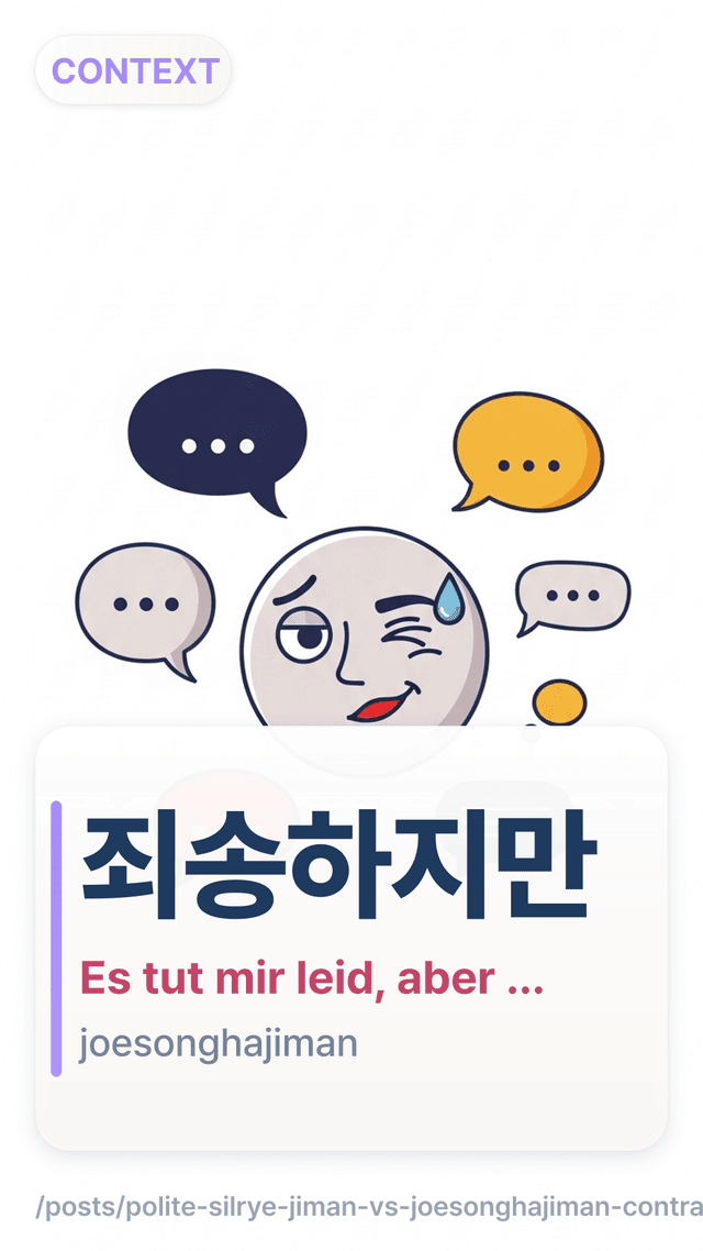 In meiner ersten Woche in Seoul habe ich am Schalter ständig mit 죄송하지만joesonghajiman angefangen, nur um eine einfache Frage zu stellen. Das war höflich, klang aber auch so, als hätte ich schon Ärger gemacht. Sobald du diesen Unterschied einmal spürst, werden die beiden Ausdrücke viel leichter.