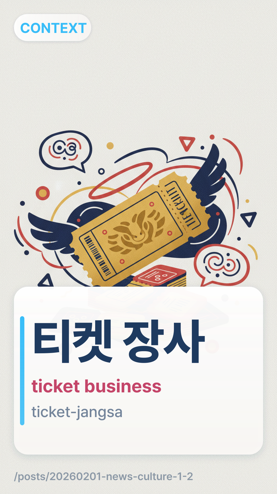 티켓 장사tiket jangsa (ticket-jangsa) literally means "ticket business" or "selling tickets for profit." In a political context, it is a derogatory term used to accuse someone of using an event to extract money from supporters rather than for genuine communication.