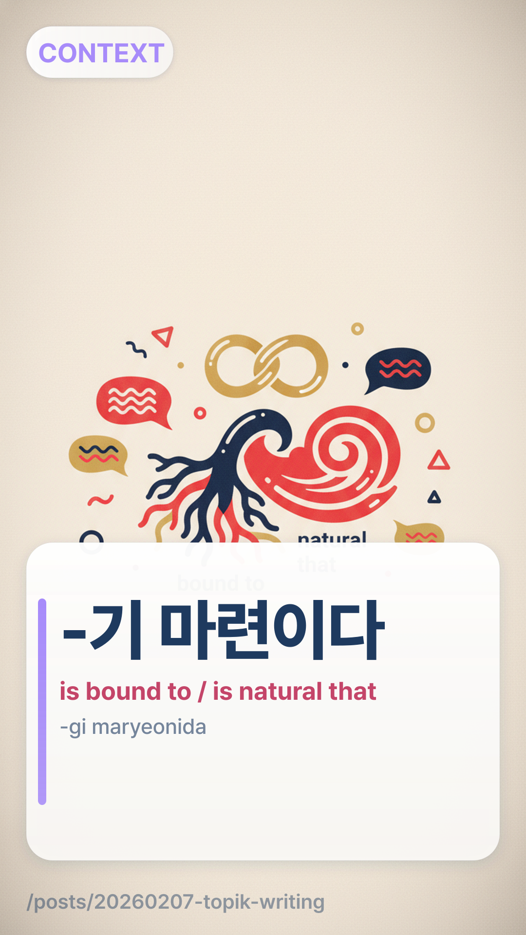 Boost your TOPIK score by mastering -(으)ㄴ/는 데다 and -기 마련이다. Learn to connect ideas and state natural laws effectively.