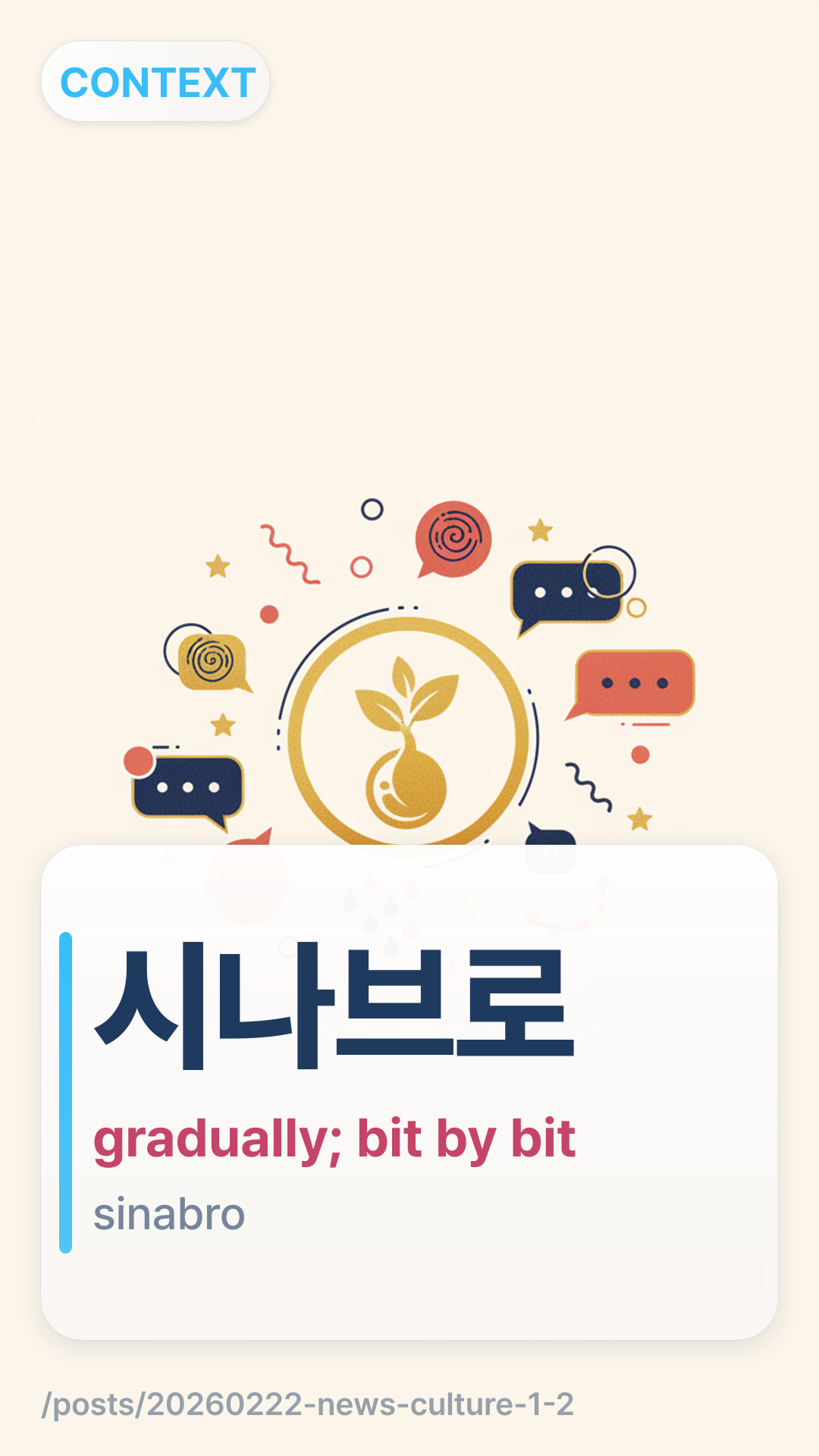 In the concert title "Sinabrunch," the core element is the word μλλΈλ‘ (Sinabro). It is a pure Korean adverb that describes an action or change happening slowly, steadily, and almost without notice. Unlike words that imply a sudden shift, "sinabro" suggests a natural, gradual progression.