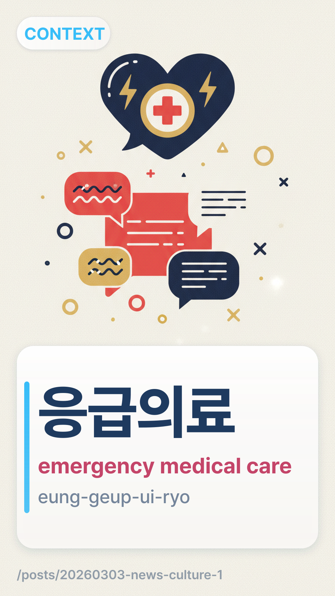 μκΈμλ£eunggeubuiryo (eung-geup-ui-ryo) refers to "Emergency Medical Services" or "Emergency Care." It is a formal term used in legal, medical, and news contexts to describe the immediate treatment provided to patients in critical condition.