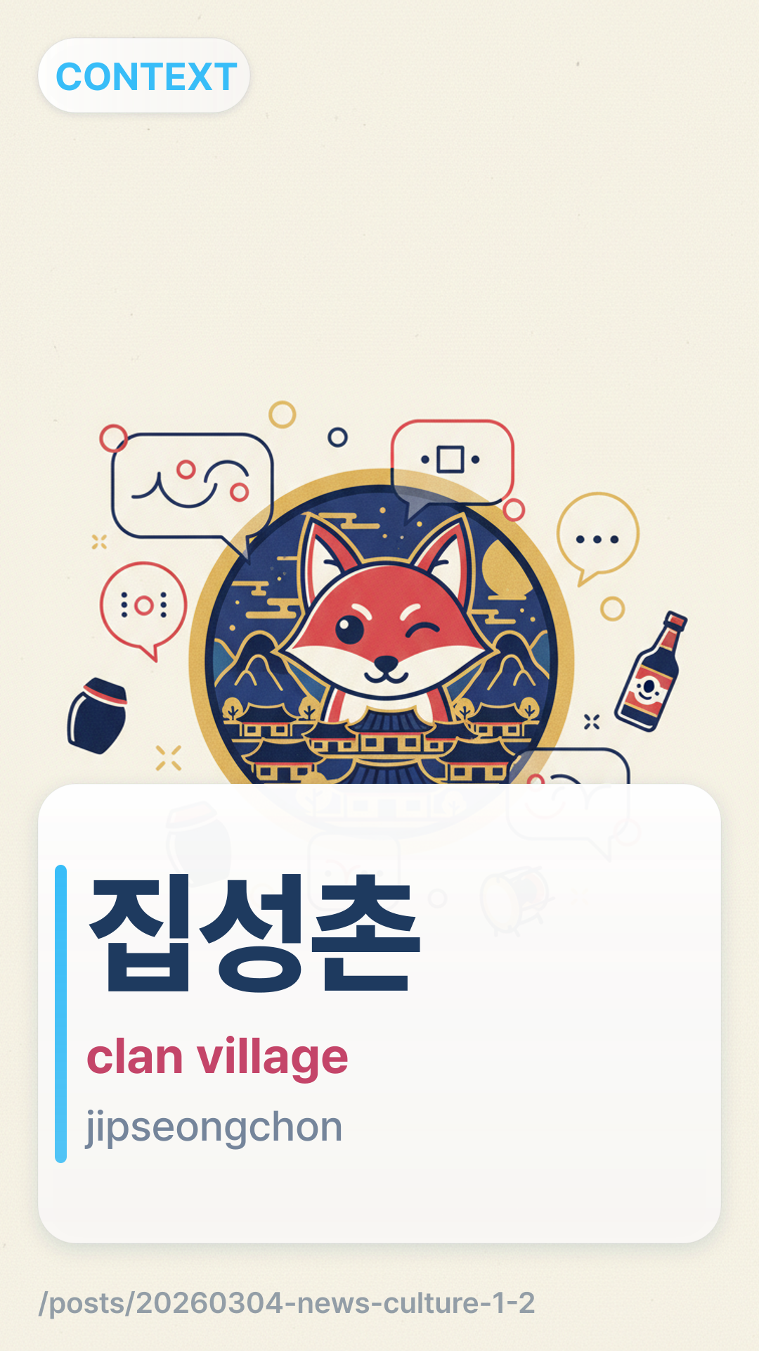 μ§μ±μ΄jipseongchon (jipseongchon) refers to a traditional Korean village where most residents share the same surname and belong to the same family clan. These villages were the backbone of rural Korean society for centuries, preserving specific family traditions and ancestral rites.