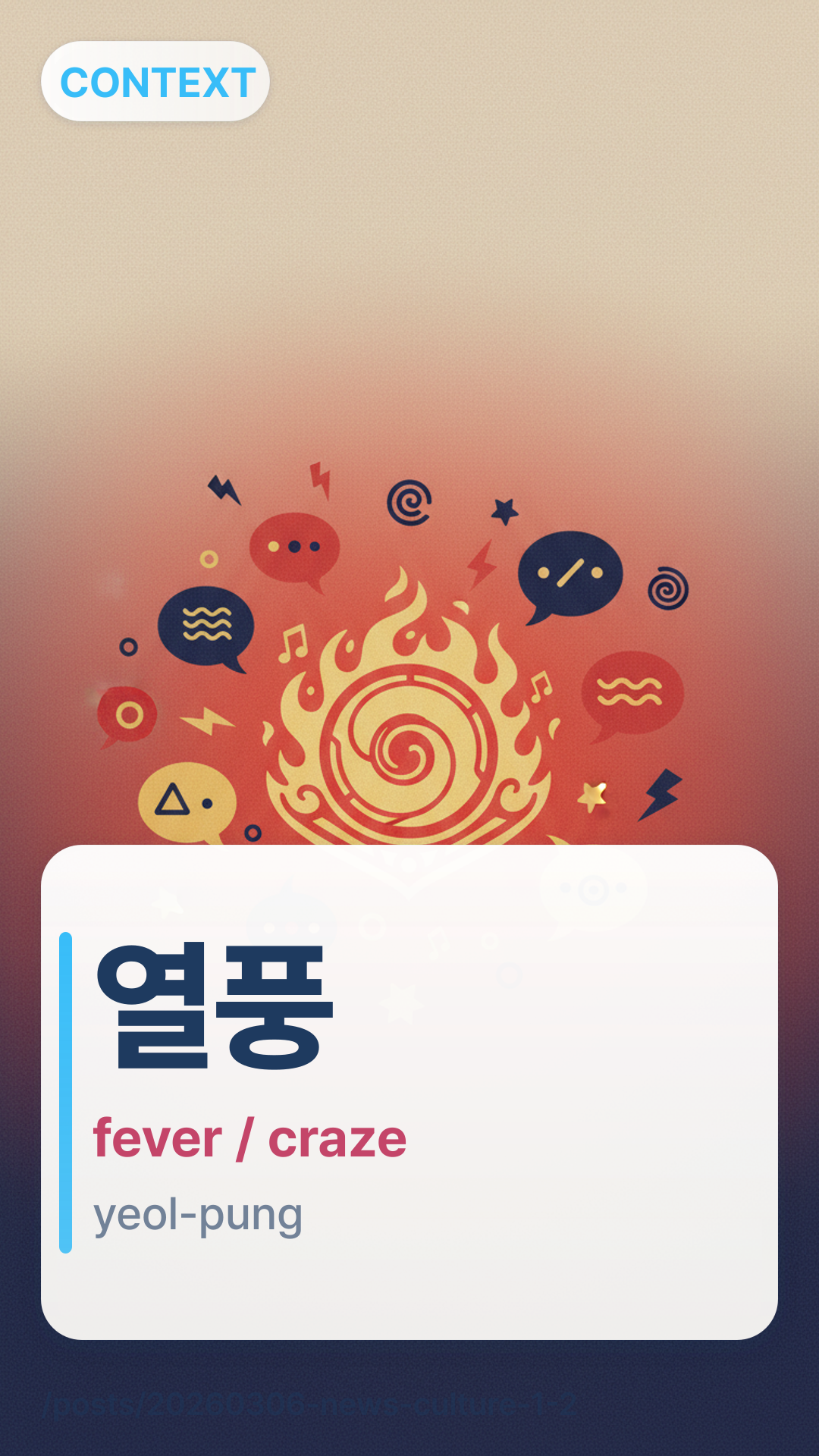 μ΄νyeolpung (Yeol-pung) literally translates to 'fever' or 'hot wind.' In a cultural context, it refers to a massive craze, syndrome, or a trend that is taking the country by storm. It is stronger than just a 'trend' and implies a level of social obsession.