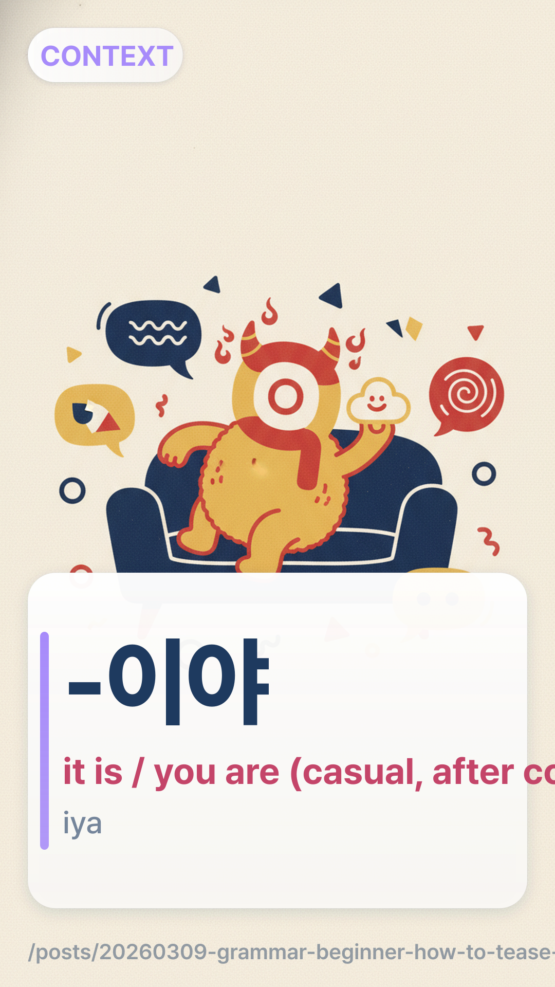 Master the casual endings -์ผ and -์ด์ผ to tease your Korean friends. Learn the 'tease-meter', avoid common mistakes, and practice with a quiz!