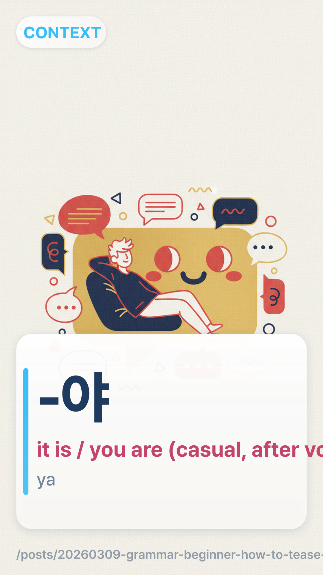 Many beginners stick to the polite -์์/์ด์์-yeyo/ieyo even when joking with close friends. While safe, it creates a 'politeness wall' that kills the vibe of a good tease.