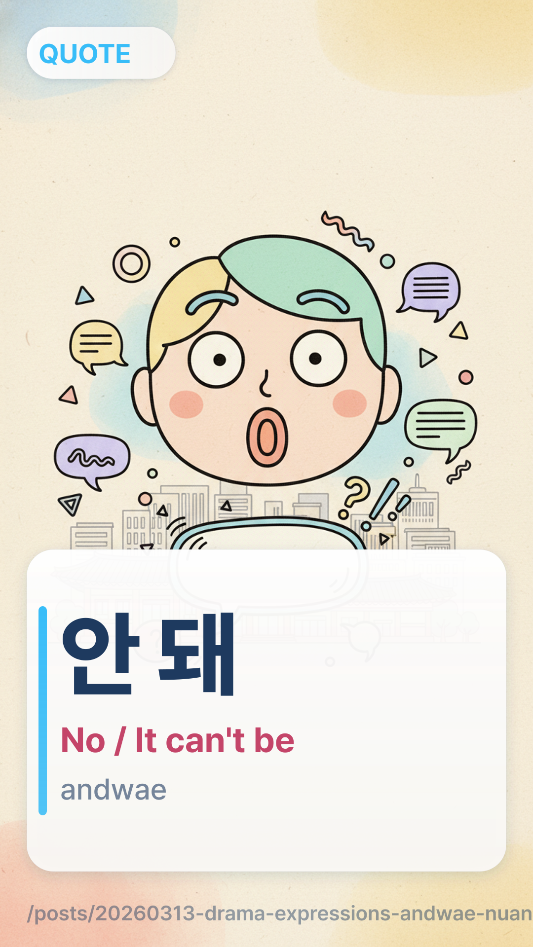 In casual speech, it ranges from a simple boundary ("Don't touch that") to a soul-crushing realization of fate. The magic is in the delivery. A short, clipped μ λΌan dwae is a command; a long, shaky μ λΌ...an dwae... is a plea to the universe.