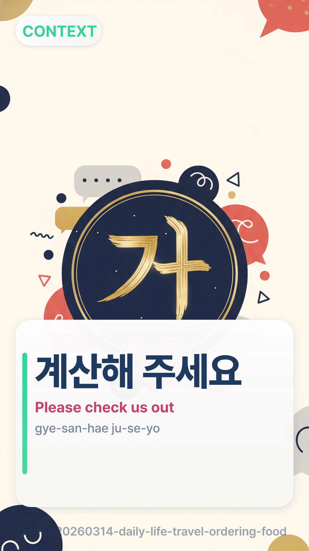 In Korea, you often pay at the counter near the exit, but in some sit-down places, you can signal the staff from your table. This phrase is the standard way to initiate the payment process.