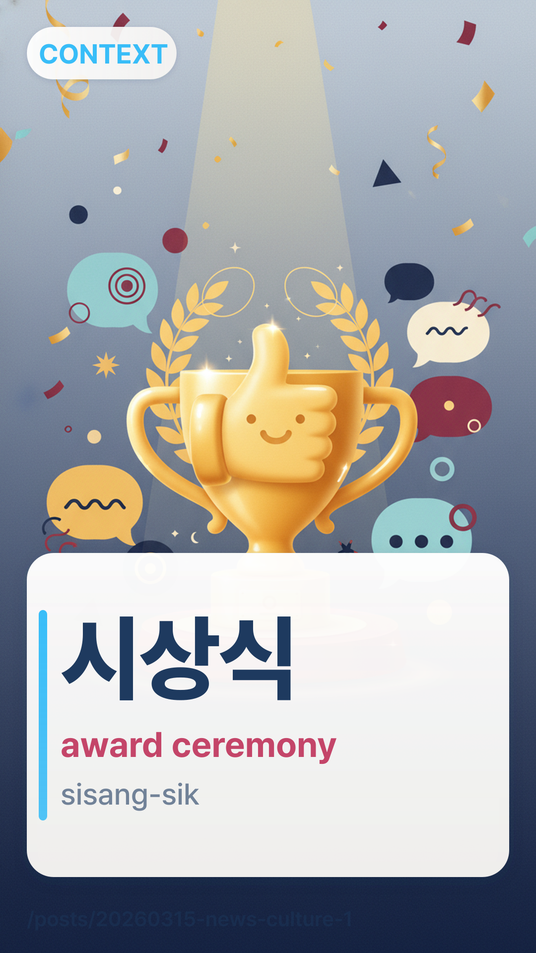 When you see the suffix -식-sik in Korean, it often denotes a ceremony or a formal method (like 결혼식gyeolhonsik for a wedding). Pay attention to these during the upcoming Korean awards season to see how different stars handle their acceptance speeches!
