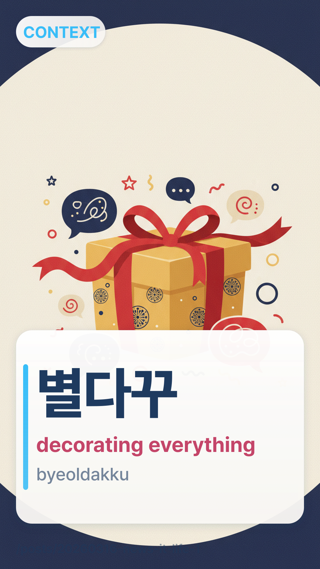 ๋ณ๋ค๊พธbyeoldakku (byeol-da-kku) is a trendy abbreviation for "๋ณ๊ฑธ ๋ค ๊พธ๋ฏผ๋ค" (byeol-geol da kku-min-da), which translates to "decorating every little thing." It describes the Gen Z obsession with personalizing mundane objects to make them unique.