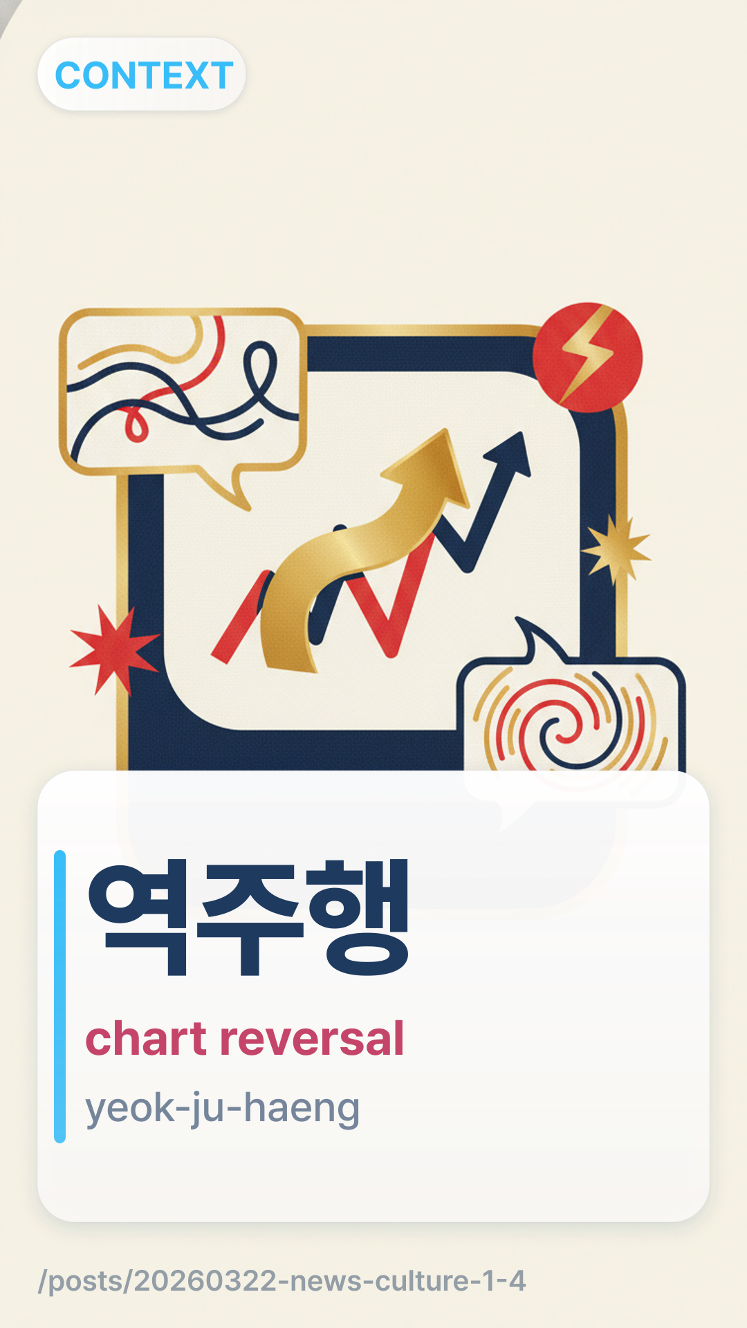 ์ญ์ฃผํyeokjuhaeng (yeok-ju-haeng) literally means "driving the wrong way" or "running backward," but in the context of Korean entertainment and charts, it refers to a "belated climb" or "chart reversal." It happens when an old song or book suddenly becomes popular again and climbs back up the rankings long after its release.