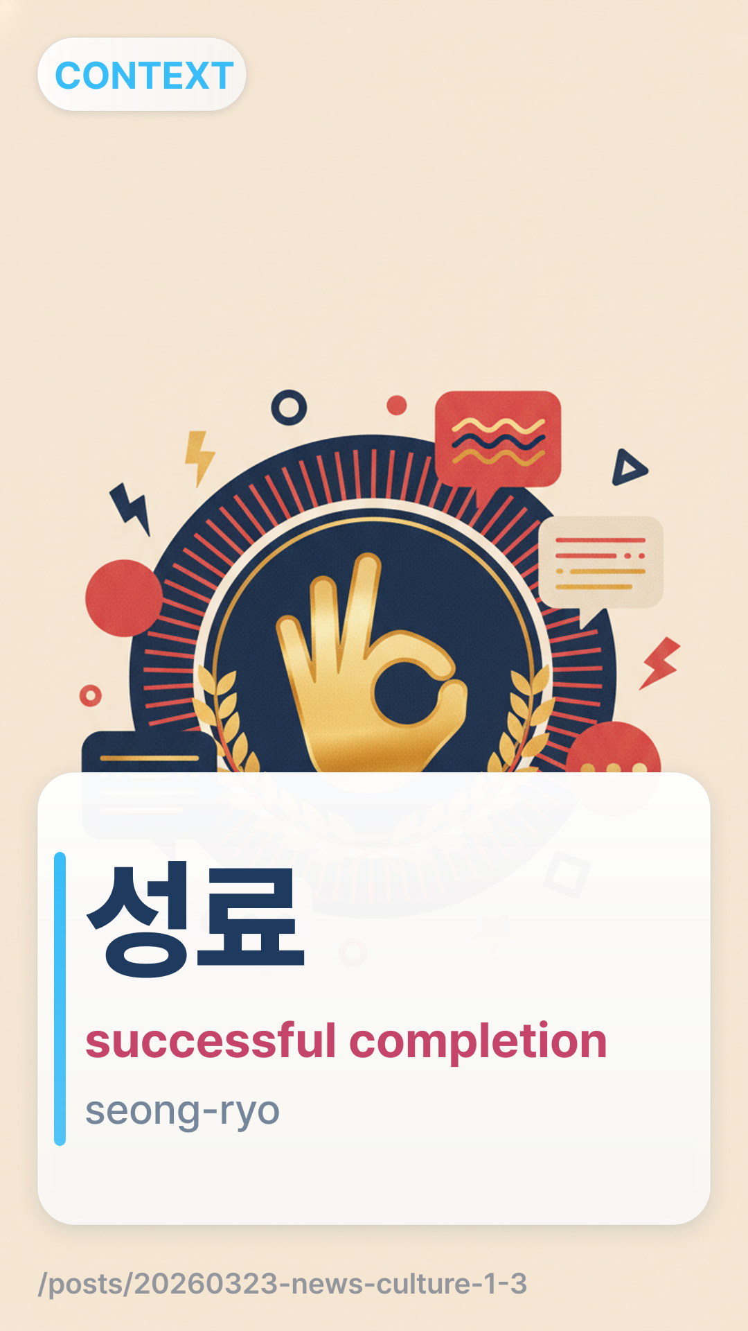 'μ±λ£' (seong-ryo) is a formal Hanja-based term often used in news headlines to describe the successful conclusion of an event, such as a concert, festival, or conference.
