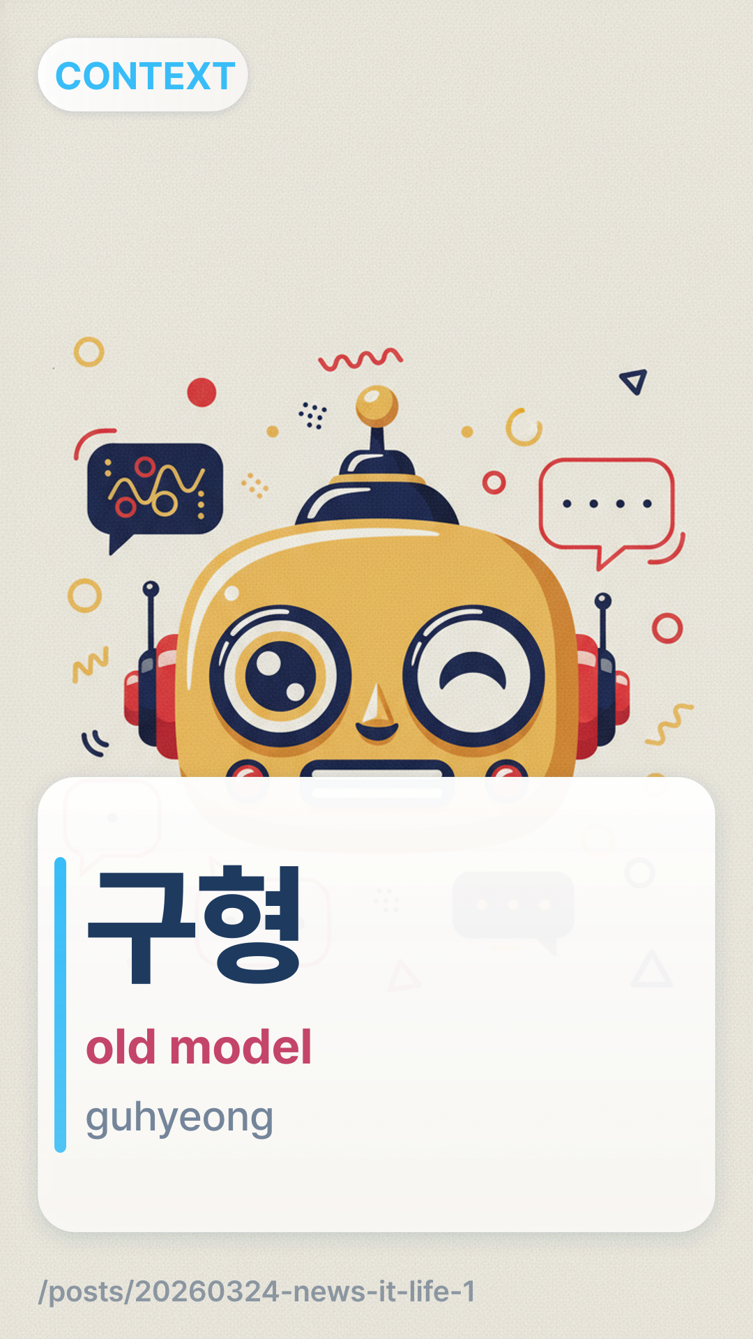 In the context of technology news, ๊ตฌํguhyeong (guhyeong) refers to an old model or an outdated version of a product, as opposed to the ์ ํsinhyeong (new model).