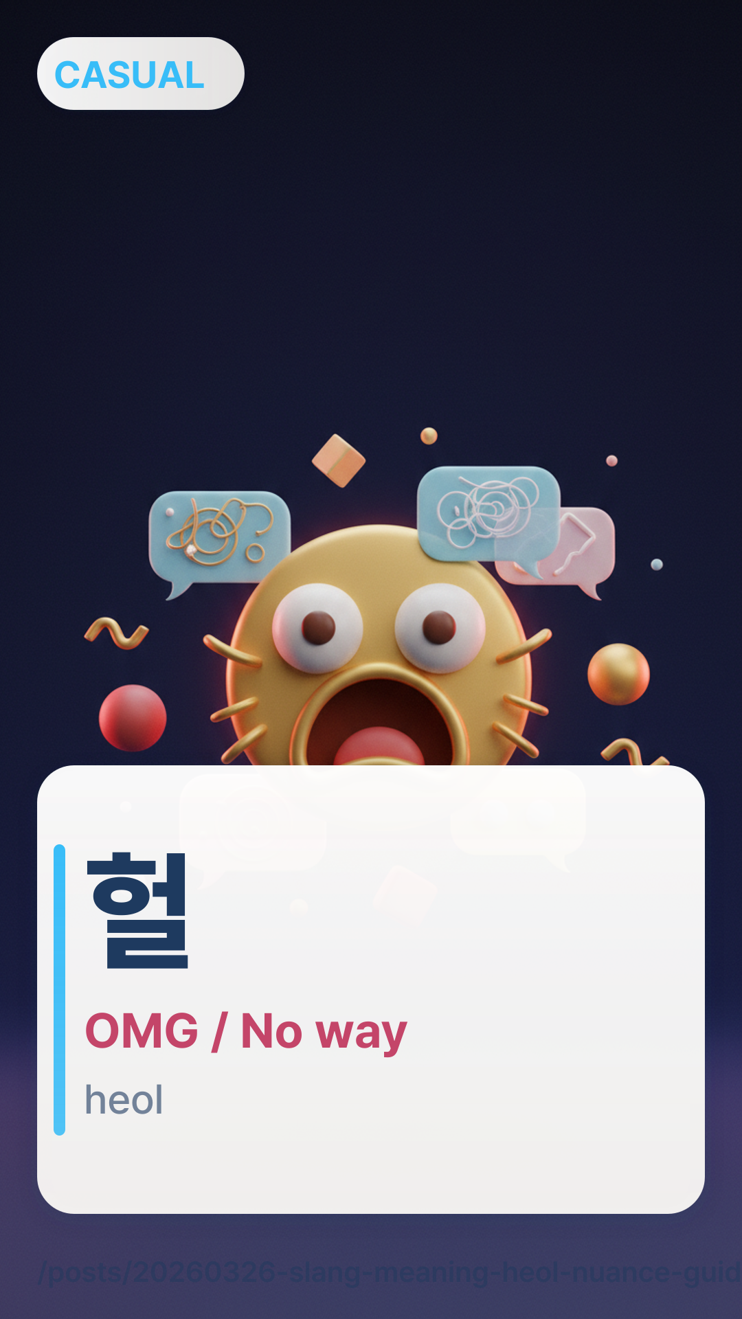 Master the Korean slang ν (Heol). Learn how to use this essential filler for shock, disbelief, and sarcasm without sounding rude. Master it now!