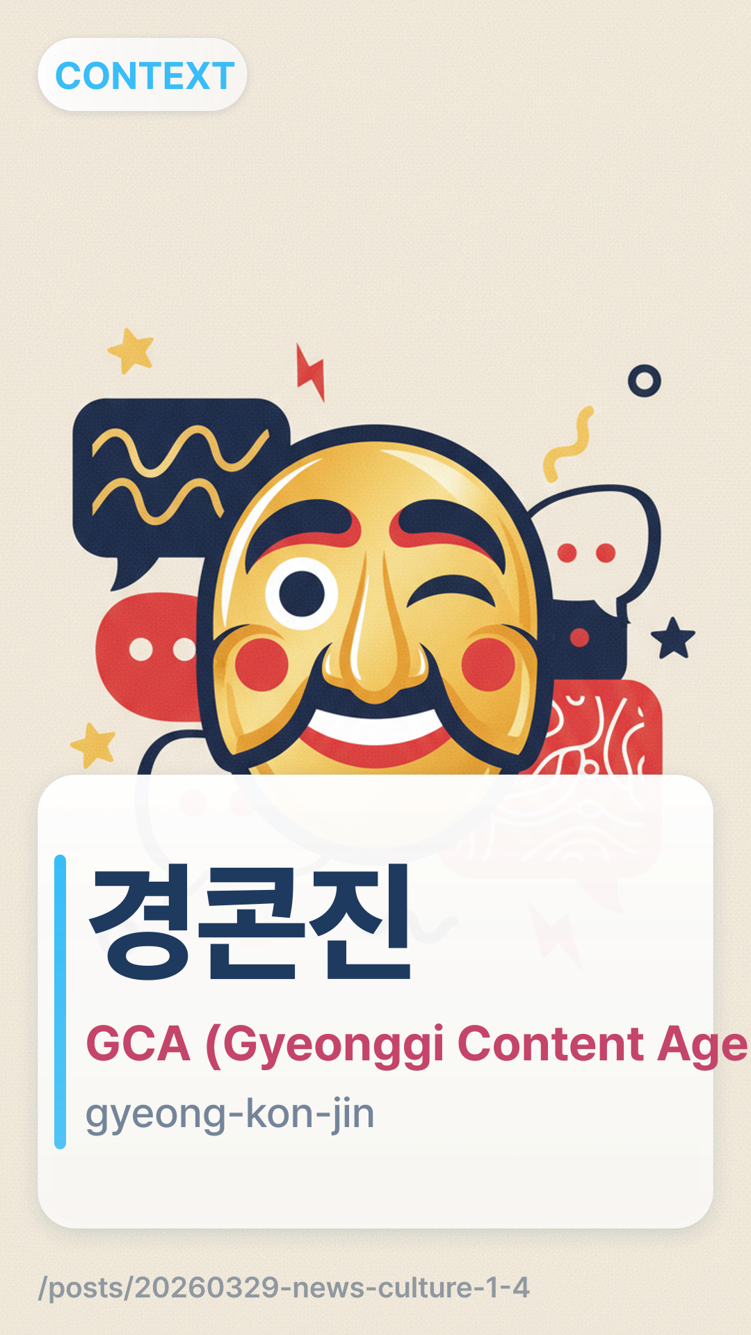 κ²½μ½μ§gyeongkonjin (Gyeong-Kon-Jin) is a common Korean abbreviation for the Gyeonggi Content Agency (κ²½κΈ°λμ½ν