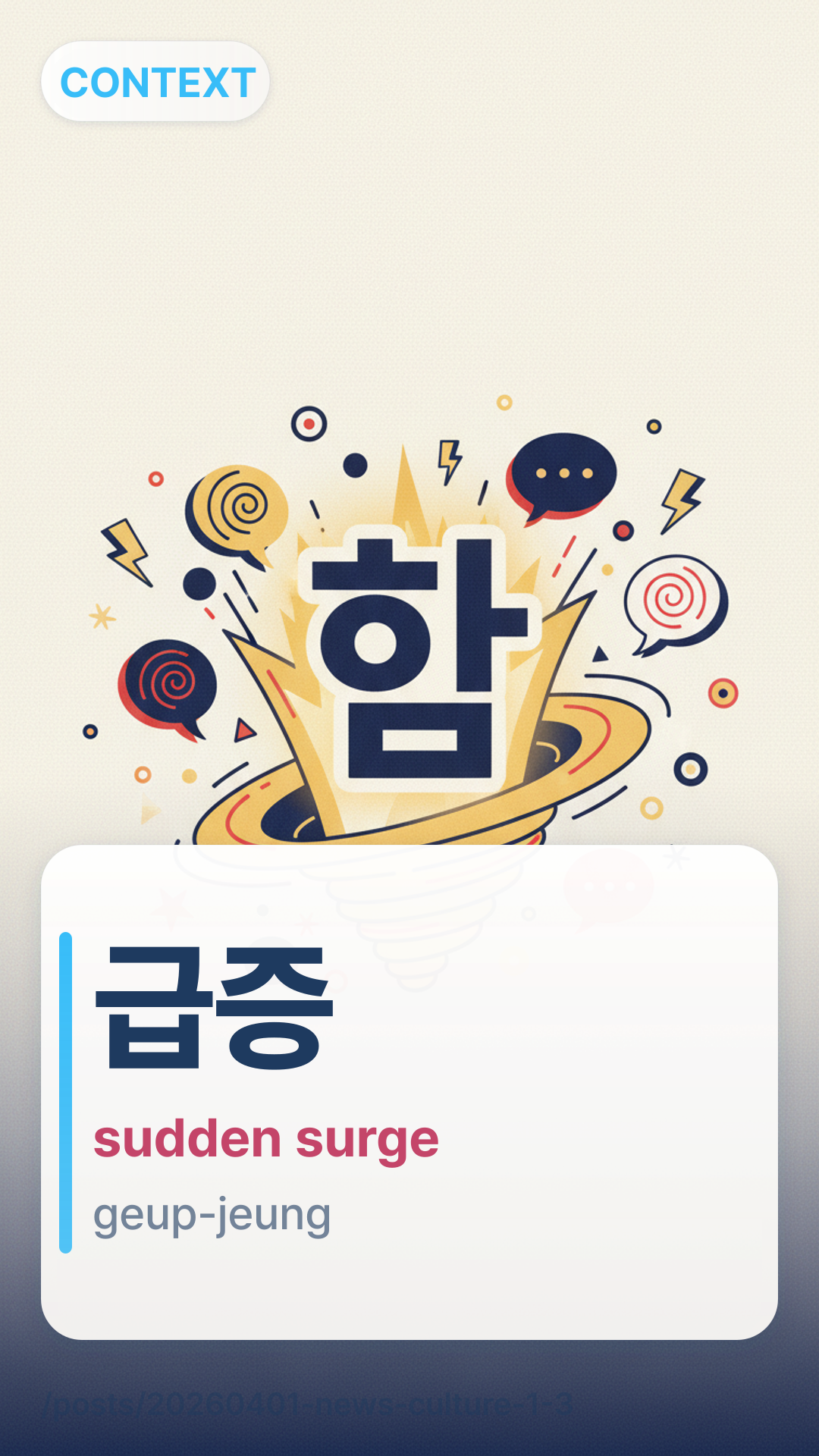๊ธ์ฆgeupjeung (geup-jeung) refers to a sudden, rapid increase or a sharp surge in numbers, often used in economic or statistical contexts.