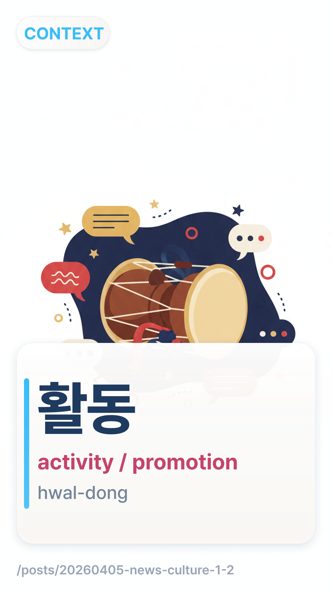 In this news context, νλ (hwal-dong) refers to "activity" or "action," specifically describing the organized events, programs, or operations carried out by an institution like a Cultural Center.