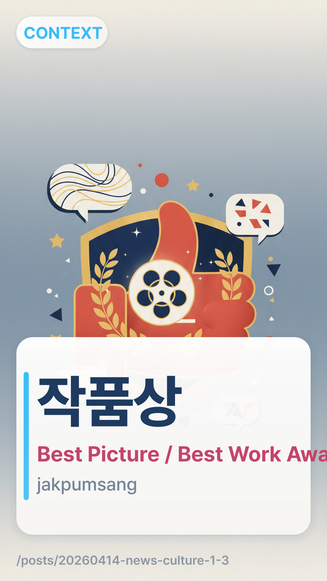EN brief: ‘왕사남’-‘어쩔수가없다’, 백상예술대상 영화 작품상 후보…뮤지컬 부문 신설 (culture) + 1 glossary term.