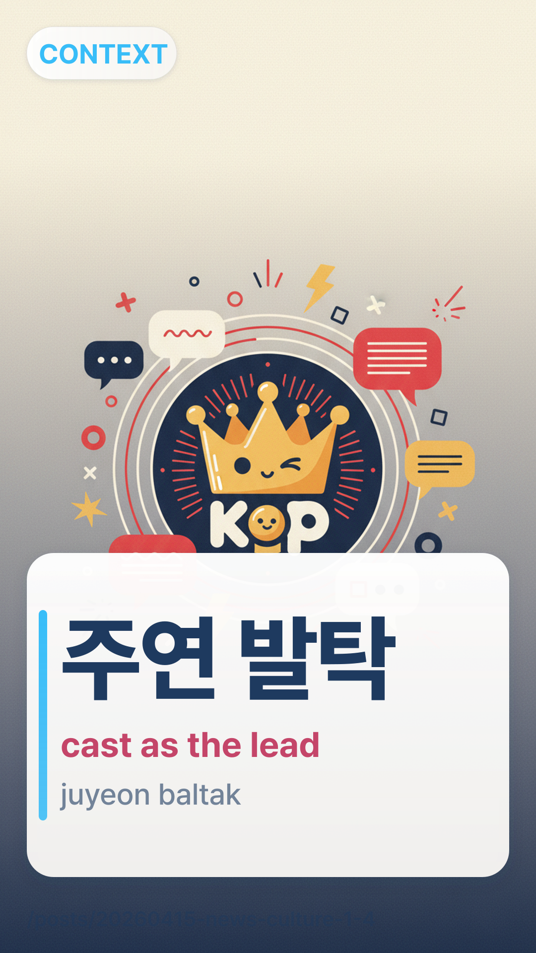 In Korean entertainment news, you will frequently see the phrase (juyeon baltak). means 'lead role' or 'main character', and means 'selection' or 'being tapped' for a position. Together, it refers to an actor being officially chosen or 'plucked' from many candidates to lead a production.