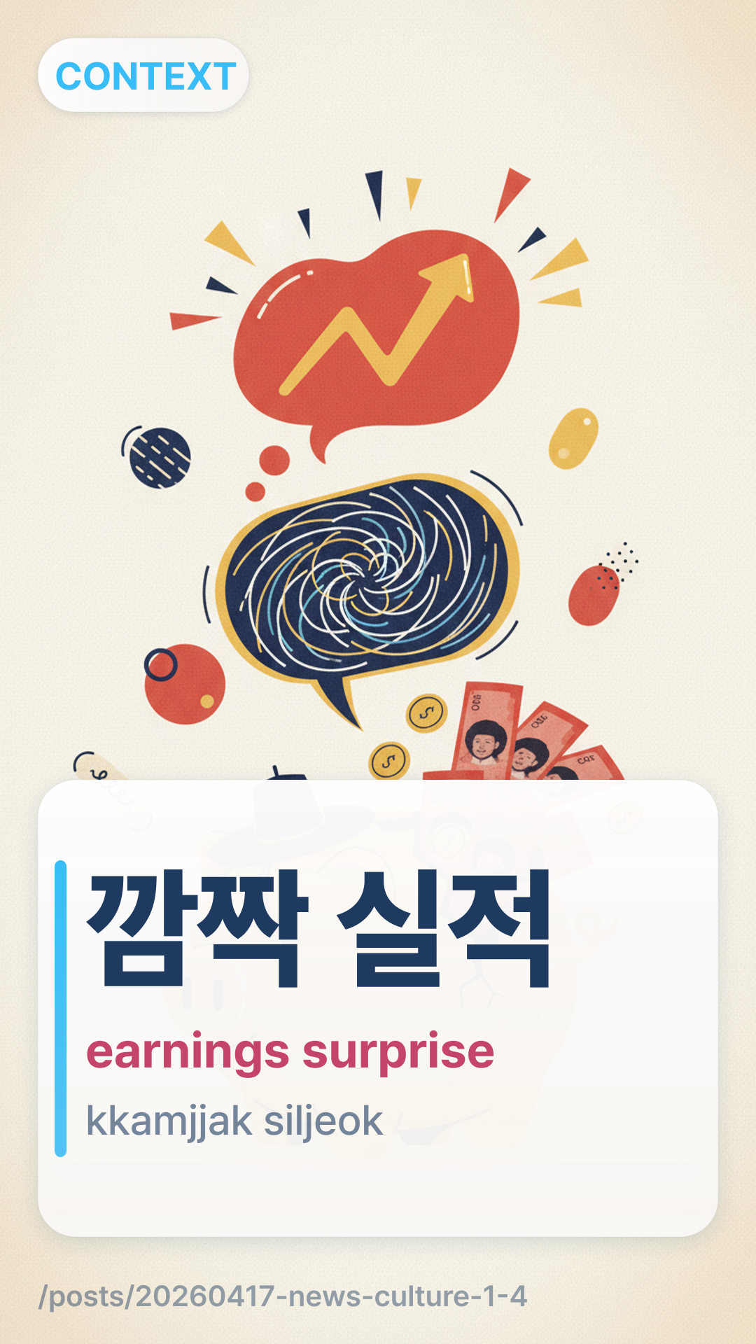 This term is frequently used in Korean financial news to describe an "earnings surprise." It combines the word (surprising/startling) with (performance/results), referring to a situation where a company's financial report is much better than the market's consensus.