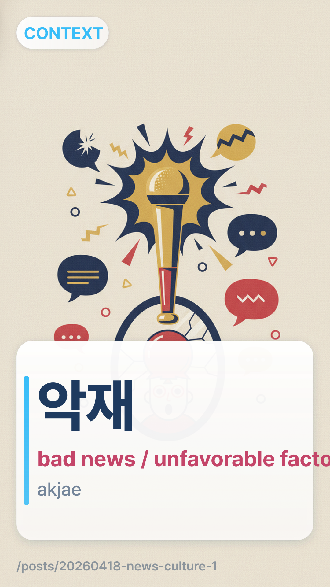 μ¬akjae (ak-jae) refers to "bad news" or "unfavorable factors" in a financial or social context. In the stock market, it specifically means any event or information that causes stock prices to fall.
