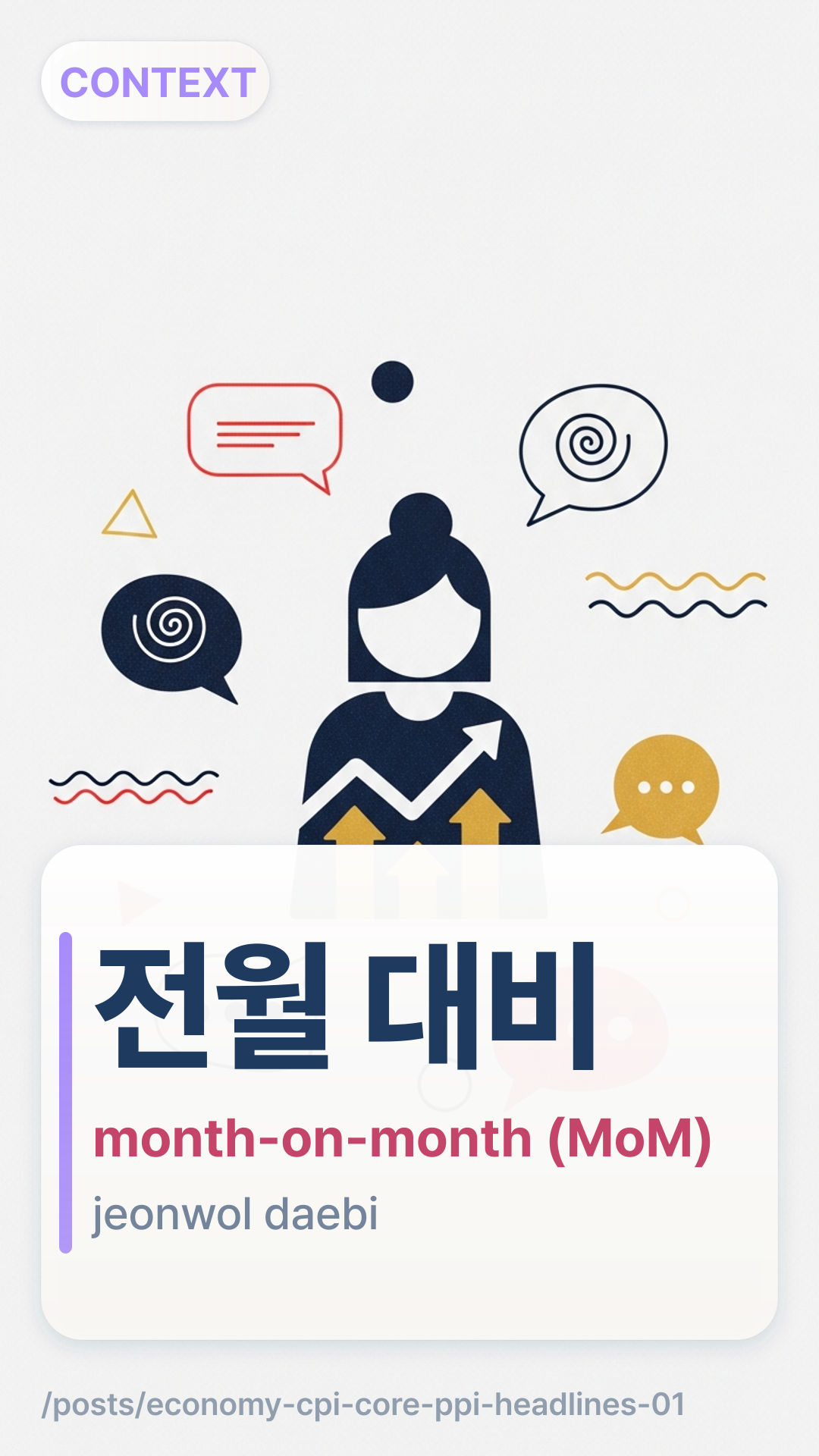 Decode 전년 대비 & 전월 대비 in CPI headlines with a simple flowchart, collocations, and number drills—master