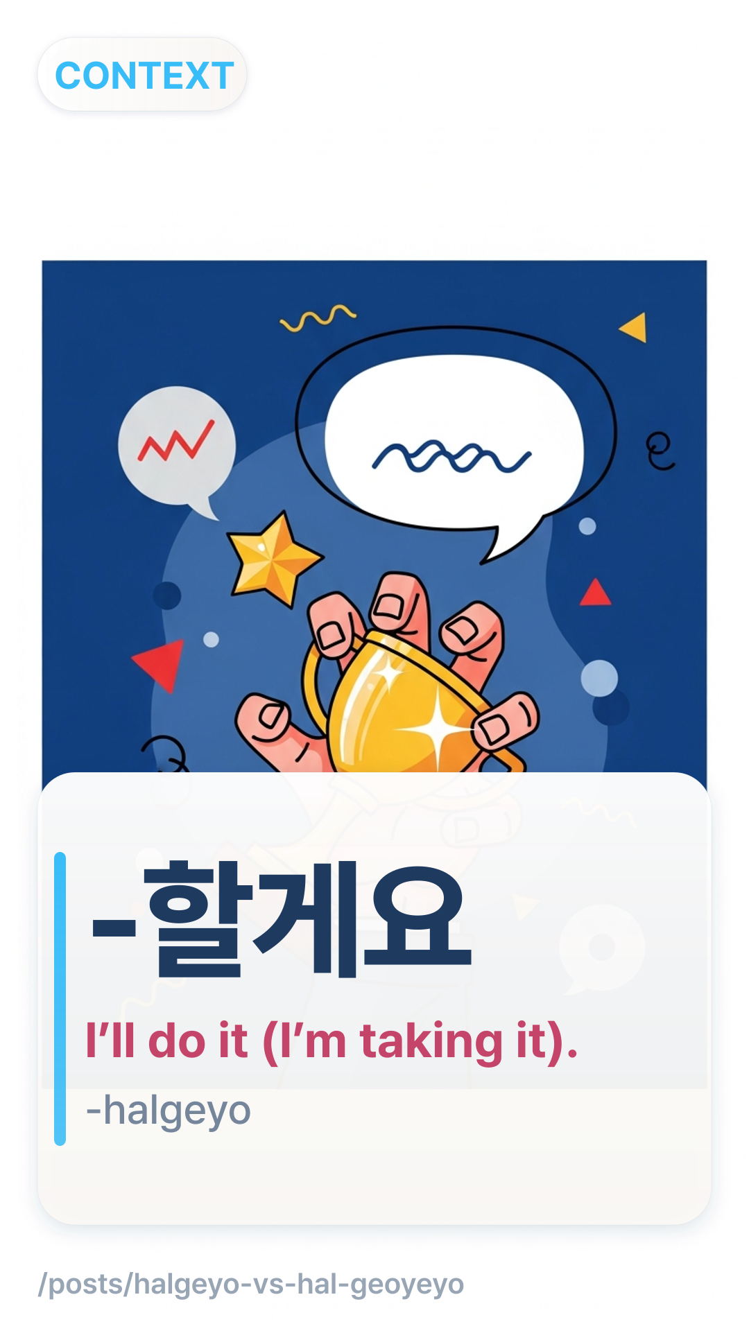 You reach for -할게요-halgeyo when someone’s words trigger a response from you: a request, suggestion, or a situation where you’re volunteering on the spot.