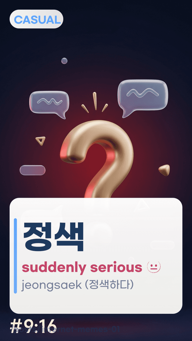 What does 정색 mean? It means suddenly going serious or deadpan, usually after a joke.
